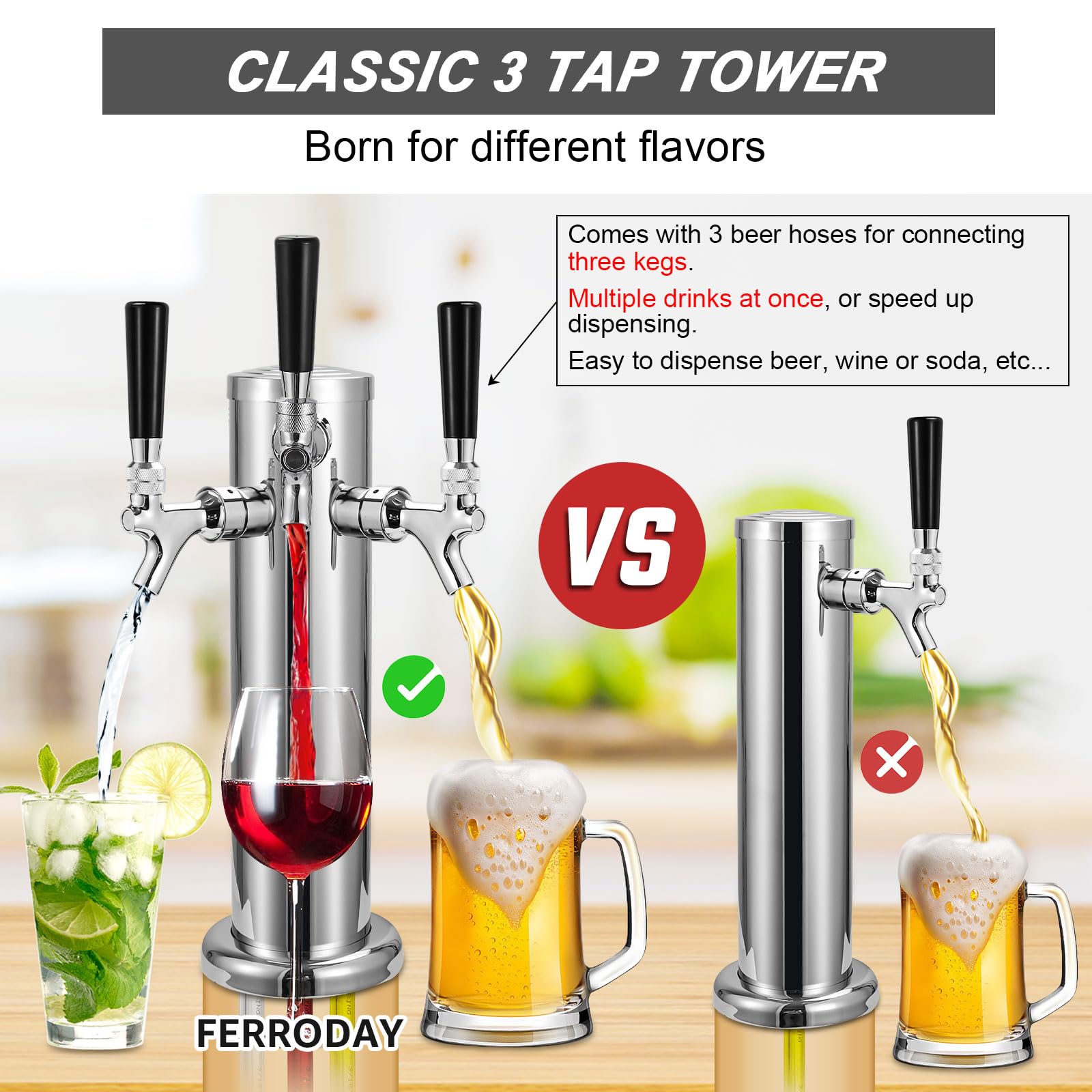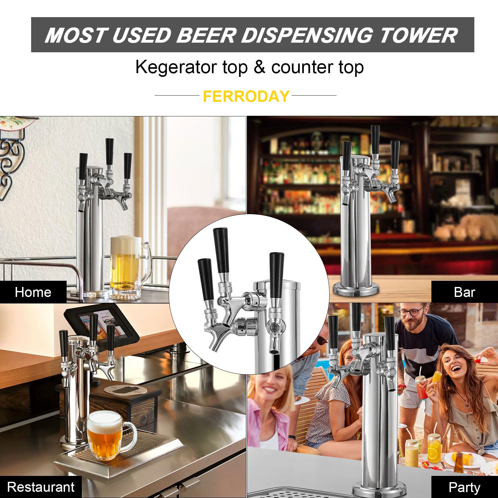 Wide Applications & No Leak & No Loose: Rugged construction of each component. stainless steel draft beer tower with standard threads for faucet installation, further fix with faucet wrench, no leaks & no loose. This beer tower dispenser fits easily on a kegerator or bar counter, making it perfect for serving beer, wine, and other beverages. Popular for indoor/ outdoor family gatherings or commercial applications like bars, hotels, restaurants, etc