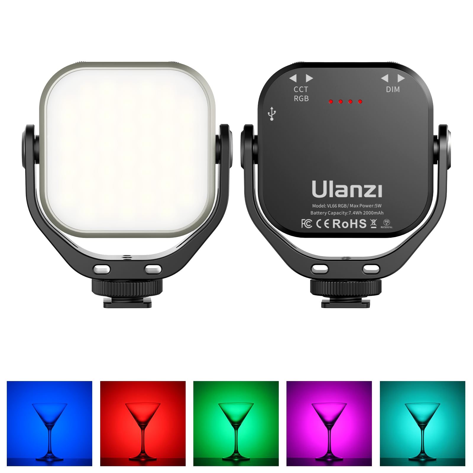 ULANZI VL66 RGB Adjustable Rechargeable 2500-6500K - Mini Video Portable Light on Camera, 2000mAh CRI95+ Dimmable, Ultra Bright Photo and Video Lighting, LED Fill Lamp for DSLR Camcorder Action Camera