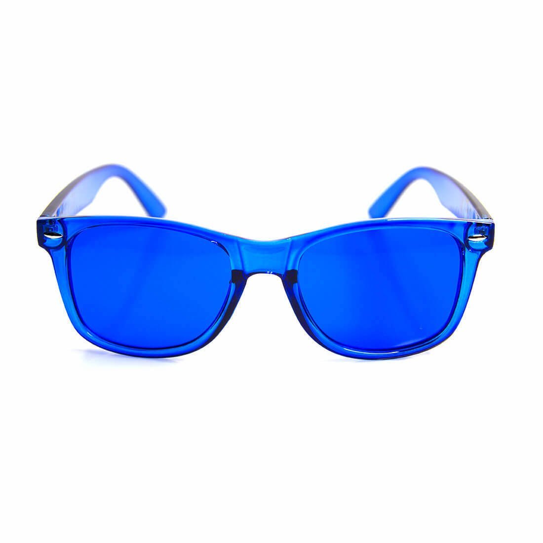 BLUE COLOR THERAPY GLASSES: Blue chromotherapy light is a saturated and easy tone, and this is where we see the calming health benefits come from! The color blue may increase expression and security.
