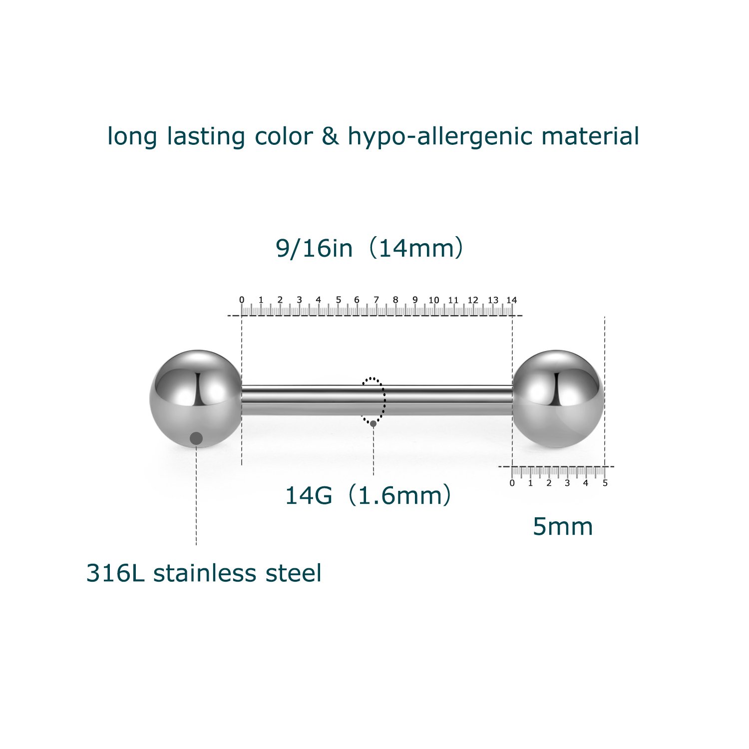 Gauge:14G ,Bar length:1/2"(12mm),9/16"(14mm),5/8"(16mm),3/4"(18mm),Top ball diameter:5mm-PLS double check the bar length which length is the most suitable for you