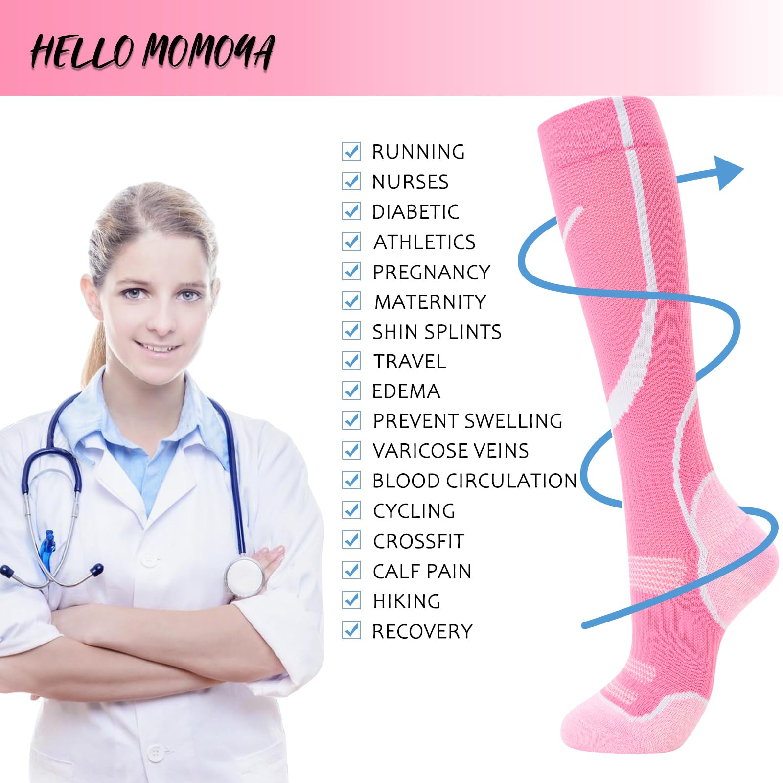 ALL FOR YOUR HEALTH: Everyone can benefit from our socks, from athletes to nurses and anyone who makes a living on their feet. Our nurse compression socks are your secret to improve circulation, so your limbs feel energized. For pregnant women, embrace the joys of pregnancy with our maternity compression socks. For jetsetter or flyer, these compression socks for flying are your travel companion. Looking for athletic compression socks for men? Our socks are designed to fit all of your needs.