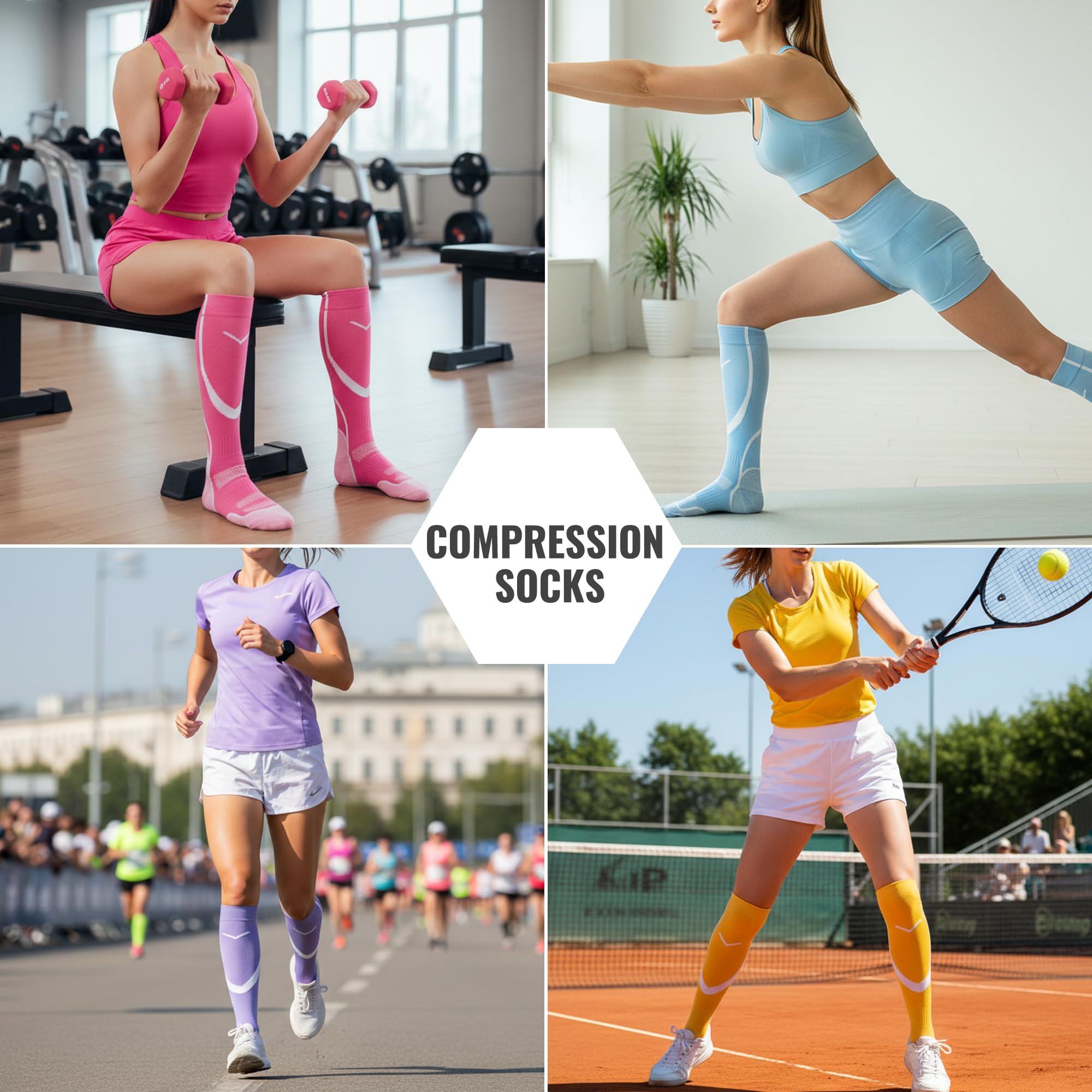 VERSATILE STYLE FOR ALL OCCASIONS: Our compression socks for men and women fit various lifestyles. Whether you're running, traveling, nursing, flying, pregnant, or need muscle support, these long compression socks men have you covered with high-quality performance. Suitable for all sports, cycling, skiing, mountain climbing, football, hiking, jogging, tennis, marathon, hockey, soccer, basketball, golf, etc. From daily wear to special occasions, experience lasting comfort.