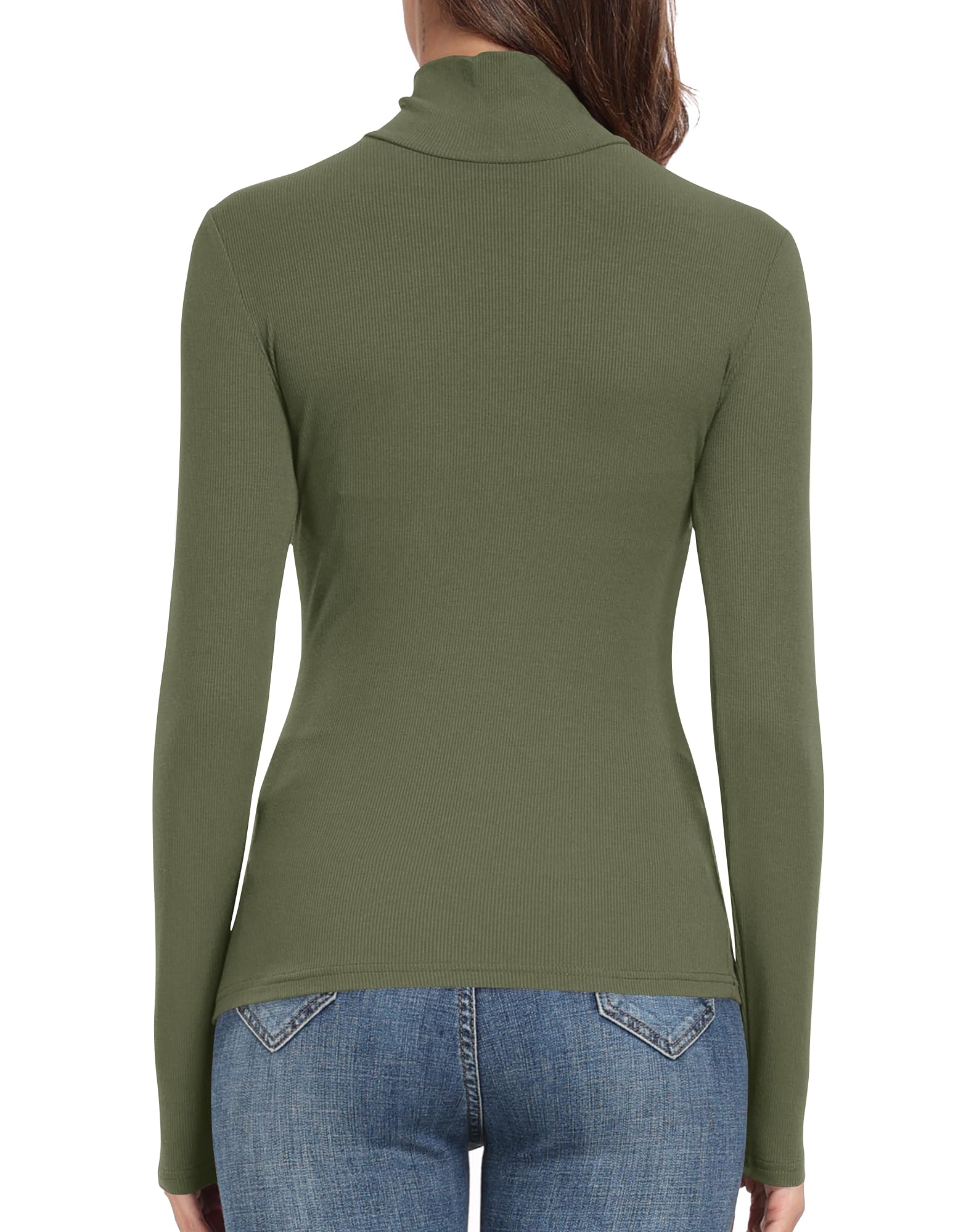 Material: Ribbed knit fitted turtle neck shirt. Soft, stretchy and comfortable ribbed turtleneck for women.