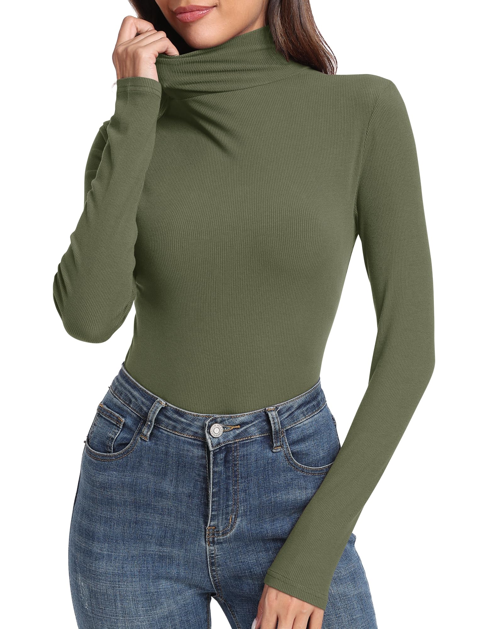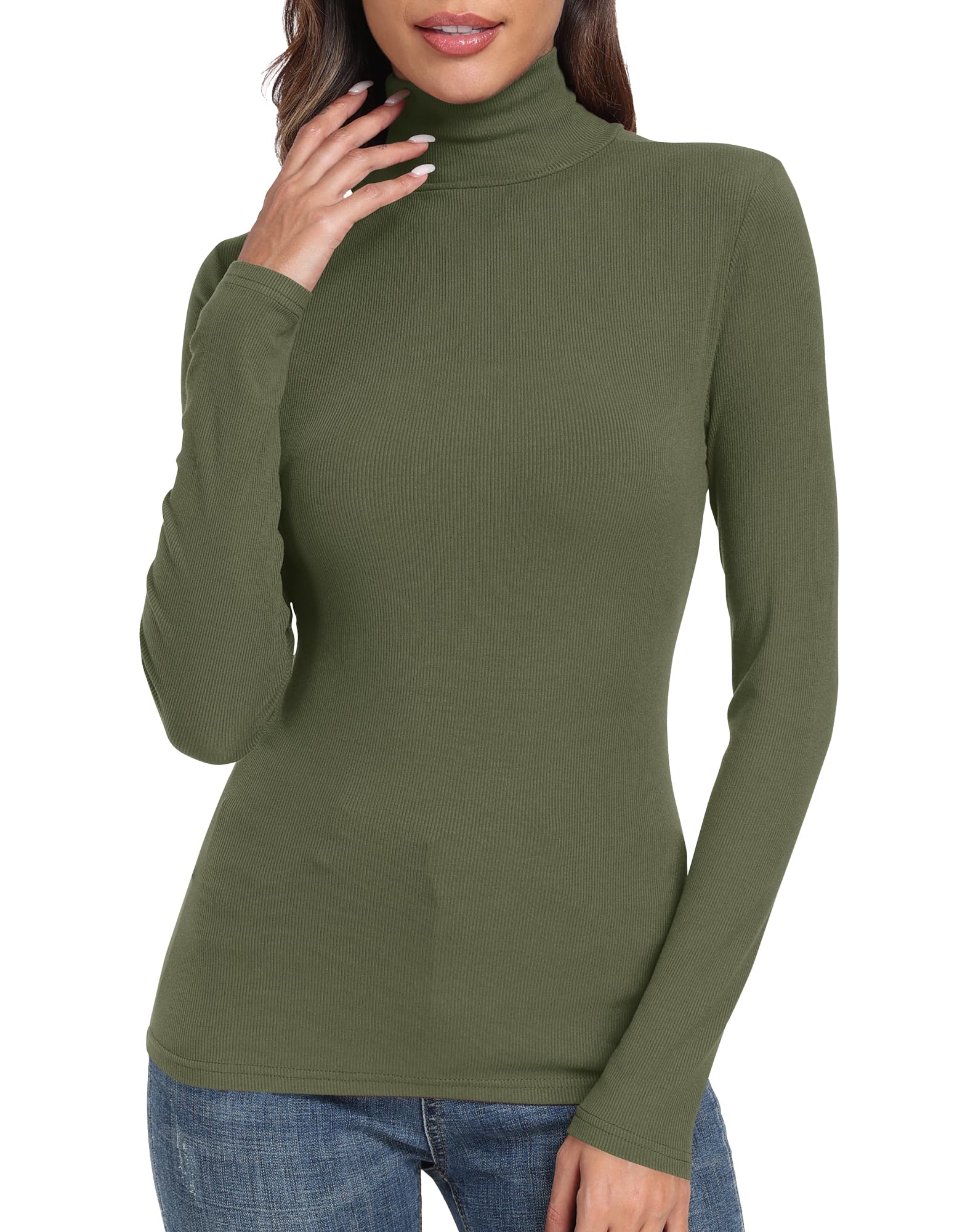 Fearure: Long sleeve shirt, women turtleneck shirt, comfy soft ribbed tshirt, slim fit layering tops.