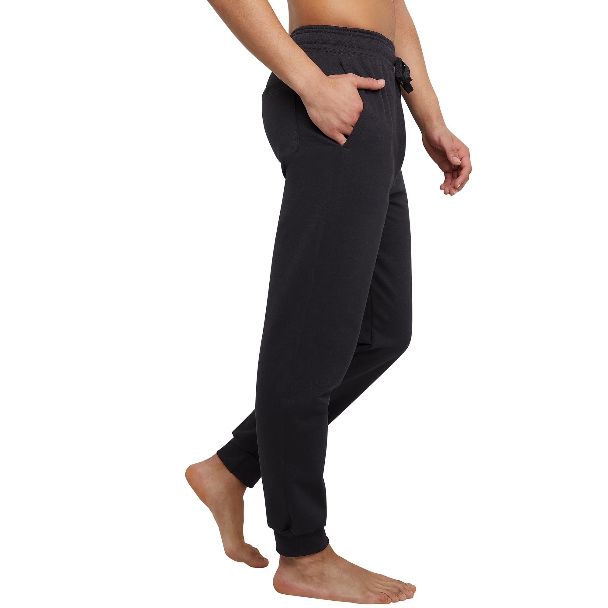 Description Just-right men's joggers let you take leisure seriously while staying versatile. Hanes® EcoSmart™ mid-weight, year-round fleece sweats are made with cotton sourced from American farms, so you can feel good about your choice. Thick fleece is made with a quality cotton/polyester blend that stays warm and cozy, so jogger pants can be a longtime favorite. Whether you're kicking back or warming up for game day, these comfortable sweatpants for men have a relaxed, athletic fit that gets the job done. Side-seam pockets and single back pocket hold essentials, freeing up your hands. Throw these men's sweatpants in the washer on laundry day for easy care. Use cold water wash to reduce energy use. Love this men's activewear? Grab one in every color to maximize your style options.