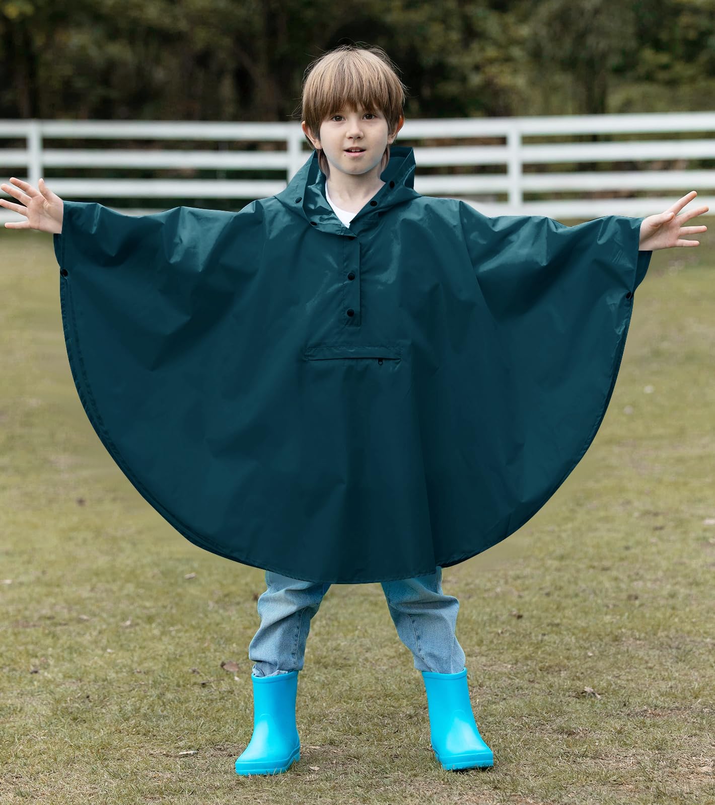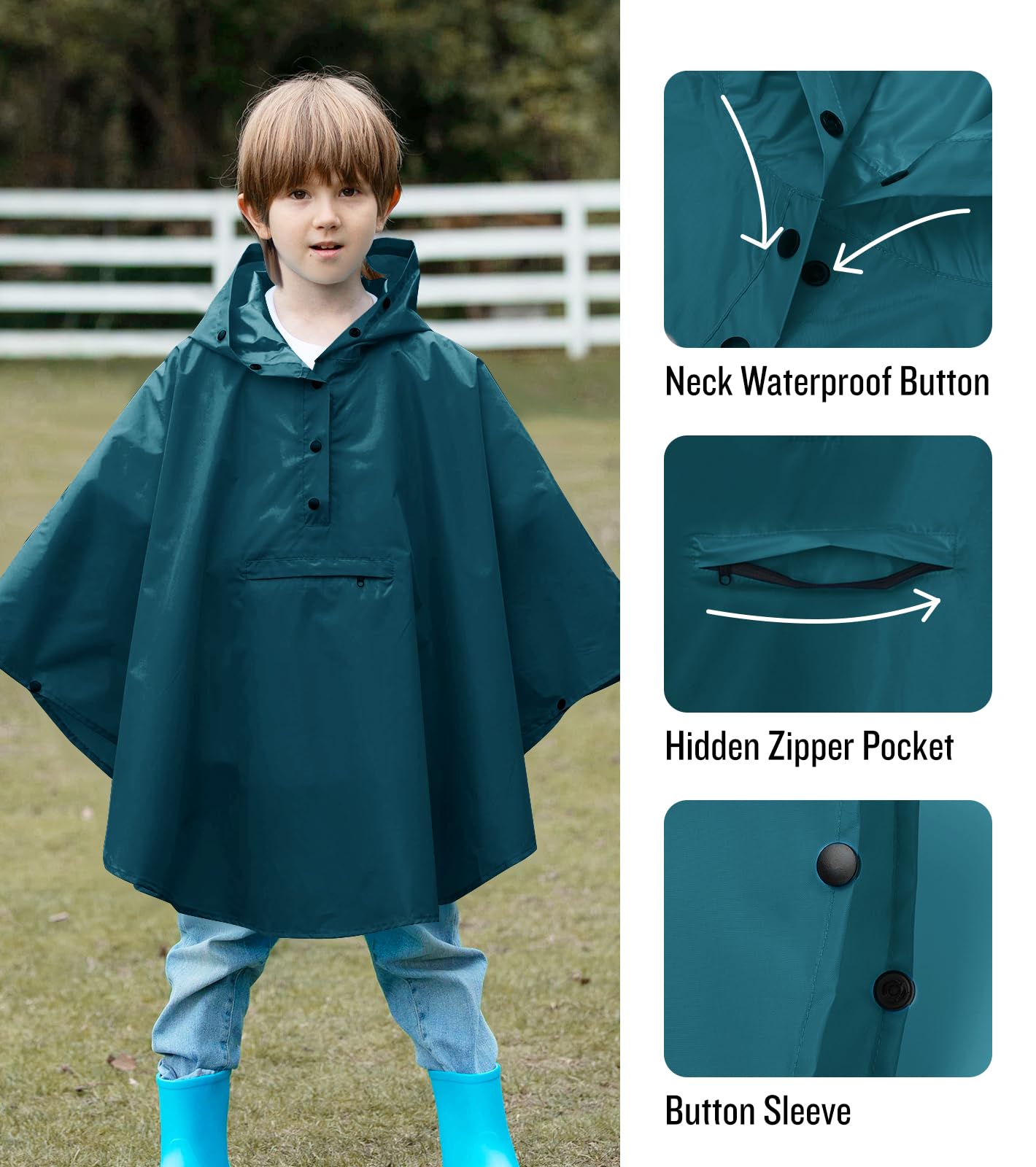[Design]: Full rain poncho cover, with snaps on hood / Zippered front pocket, for daily necessities items / Various colors and cartoon patterns, bring joy to kids