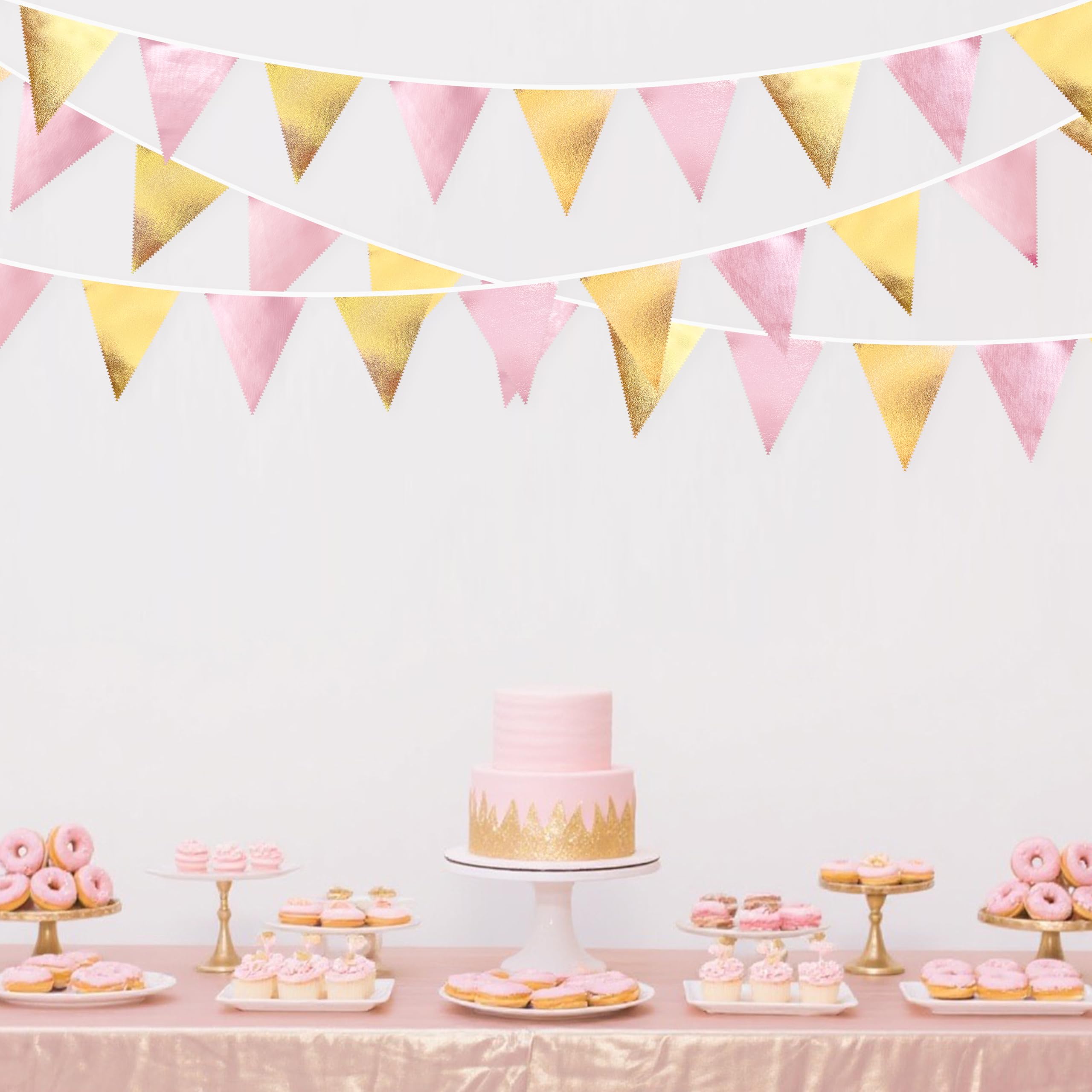 Use Occasion - This pink and gold triangle bunting flag are good ideal for any kind of celebration,party,festival,events or other occasion.It can be used for both kids and adults.Such as birthday/retirement/baby shower/wedding/anniversary/graduation/Christmas party/hen party etc.