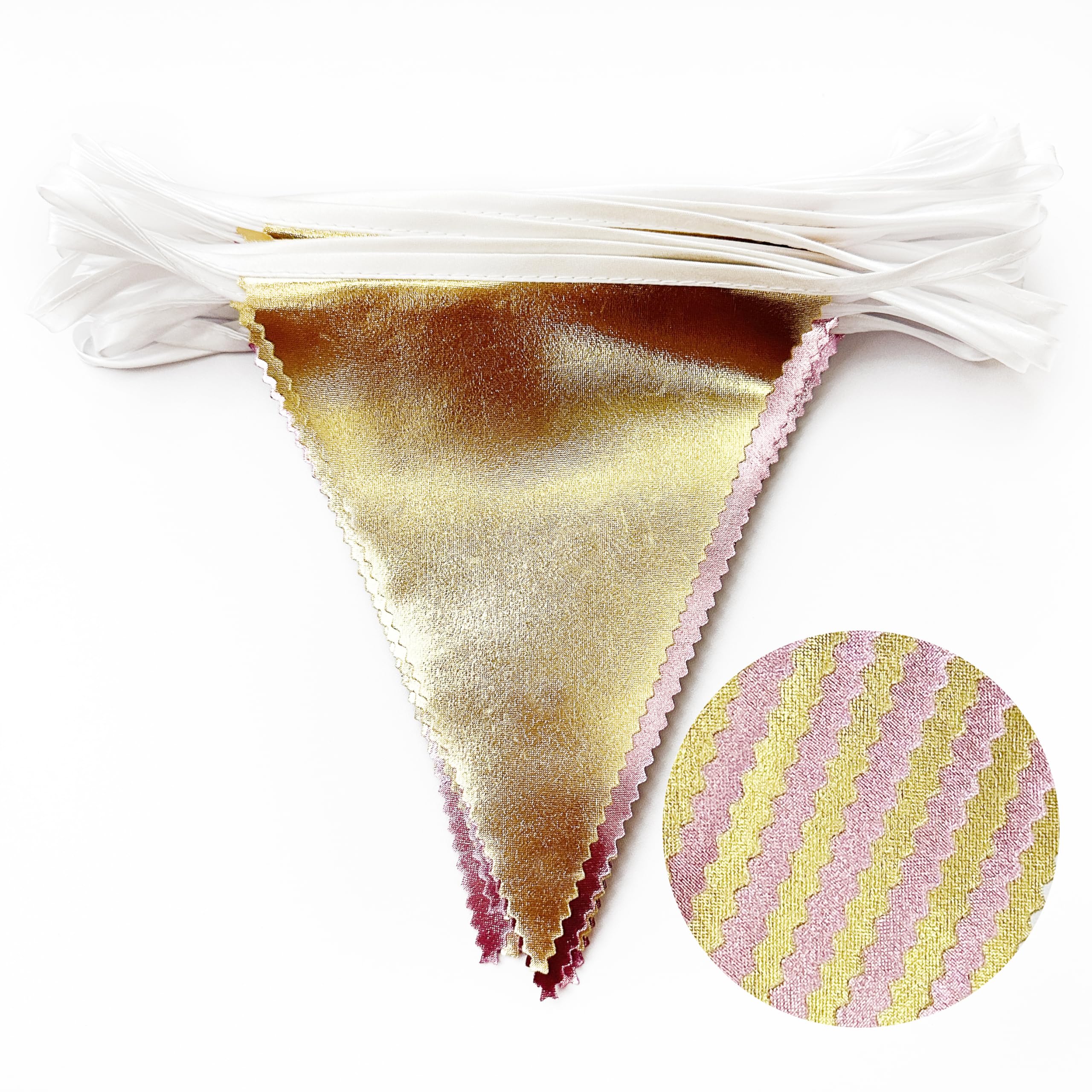 Environmental Material - Our triangle bunting flag banner are made of double-sided gold and pale pink metallic fabric cloth,Unique wavy neat cut,safe and odorless,soft and comfortable touch.washable and waterproof,durable and reusable.
