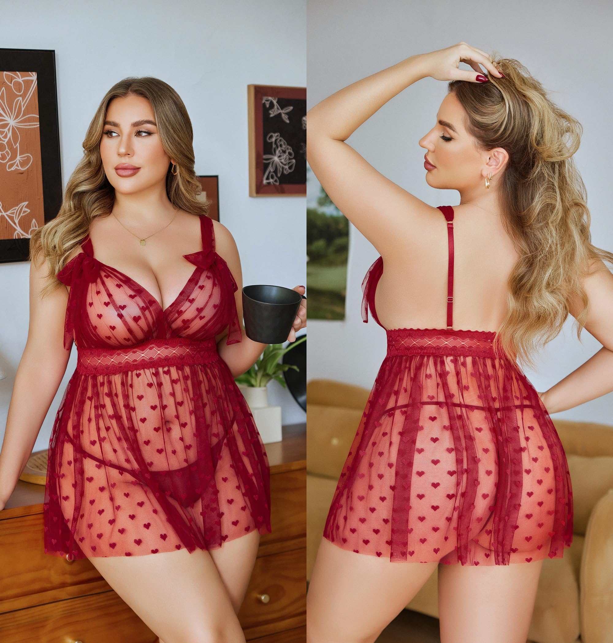 Material: The sexy plus size lingerie is made of soft and skin-friendly heart print lace, giving you a unique and comfortable wearing experience.