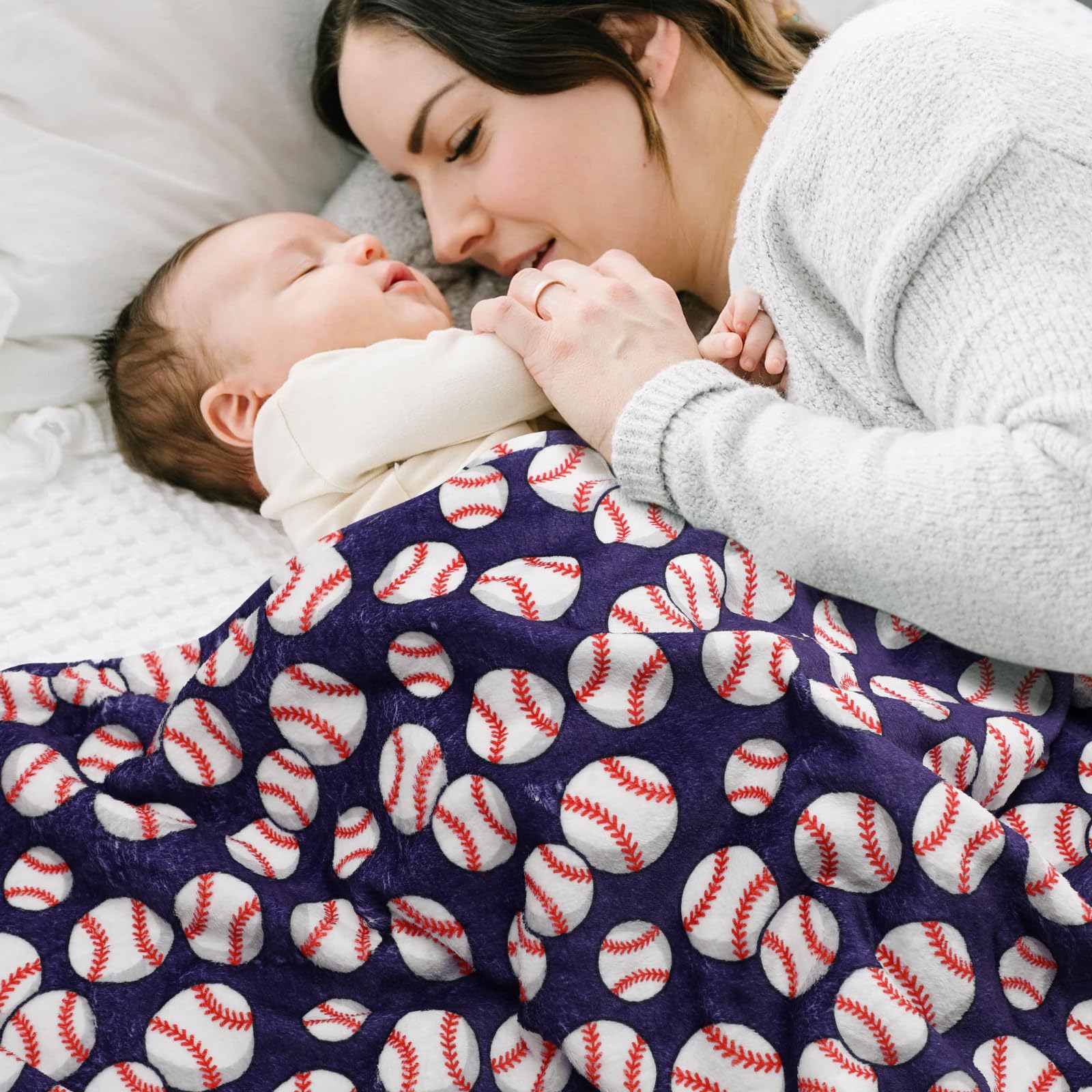 Baseball Blanket: Wrap your little baseball fan in comfort with our adorable Baseball Blanket. The charming navy blue and baseball print combination makes it the perfect addition to any little boy's bedroom. Your baby will fall in love with its softness, ensuring a cozy night's sleep, night after night.