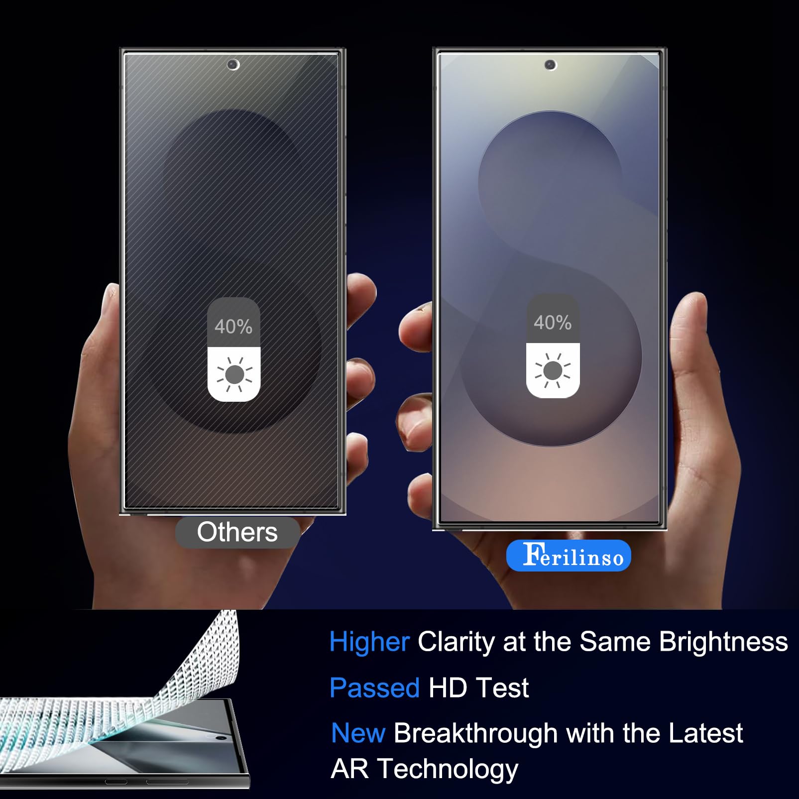 Ultra HD Bare Screen Experience, Fingerprint, Smudge Free: adopting exclusive coating technology providing maximum 99.99% optical clarity for best visual feast brought by the screen(Face ID Support: premium, high-transparency glass means you'll be able to use Face ID just like normal). Plus, thanks to the special Ferilinso-Silk technology to prevent smudges and fingerprints oil, reducing up to 98% of marks on your screen, keeping your Samsung Galaxy S25 Ultra screen clean and new.