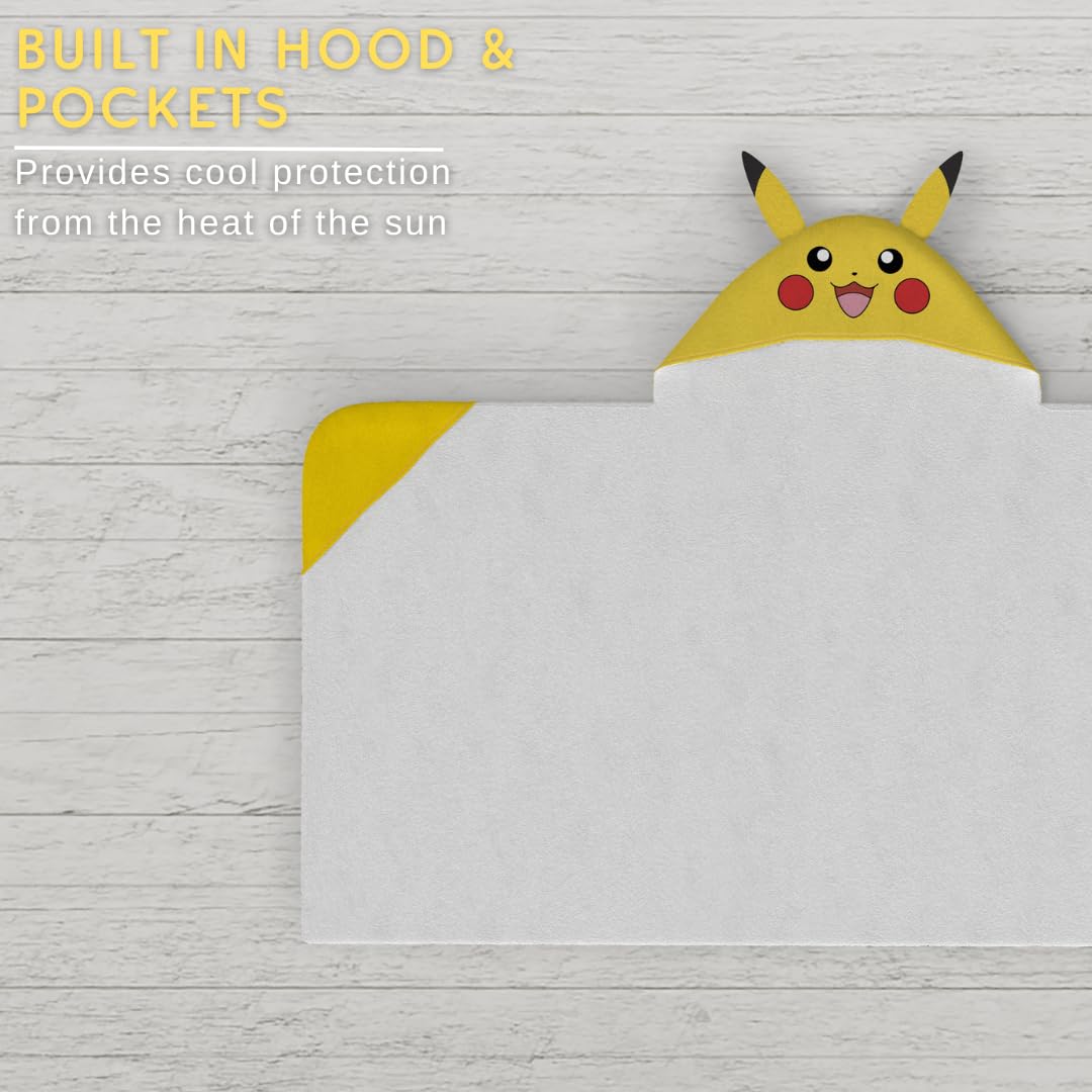 POKEMON DESIGN: Dive into Pokémon fun with this hooded towel wrap! Wrap your child in cozy charm as Pikachu and friends make bath time a playful journey of giggles and splashes!