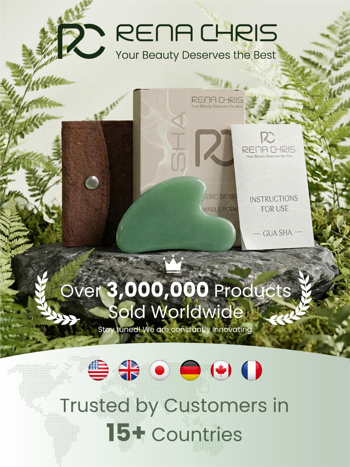 BEST FOR BEGINNERS: Crafted from smooth stone, the Rena Chris gua sha tool features a cooling surface that feels refreshing on the skin. It is easy to clean and ideal for all skin types, providing a seamless start to your daily skincare routine