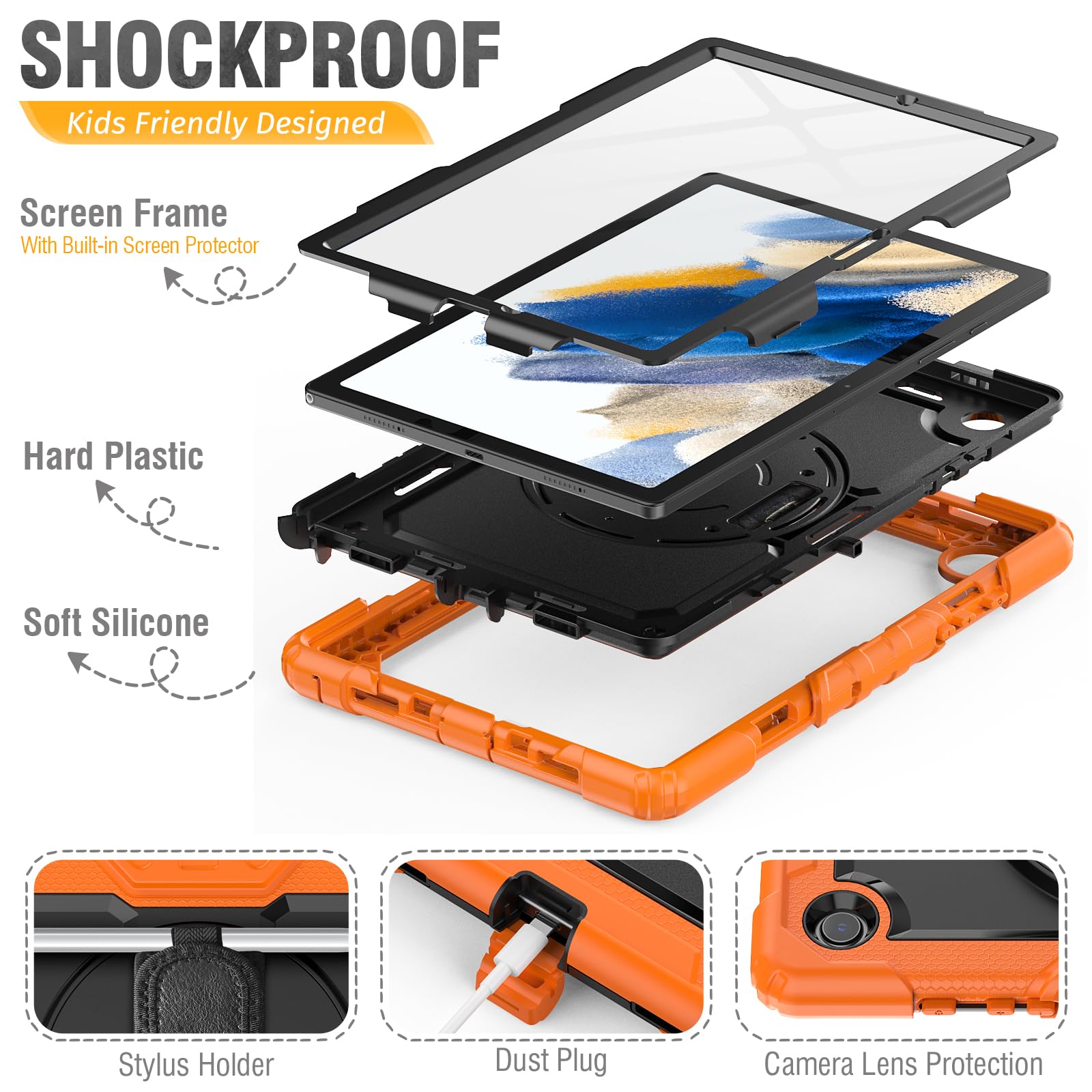 Shockproof & Screen Protector : This case for Samsung Galaxy Tab a8 cases is made of anti shock material, soft silicone, hard PC shell and built-in screen protector, with its sturdy structure to protector your tablet from shock, drop, scratch or accidental damages in daily use.