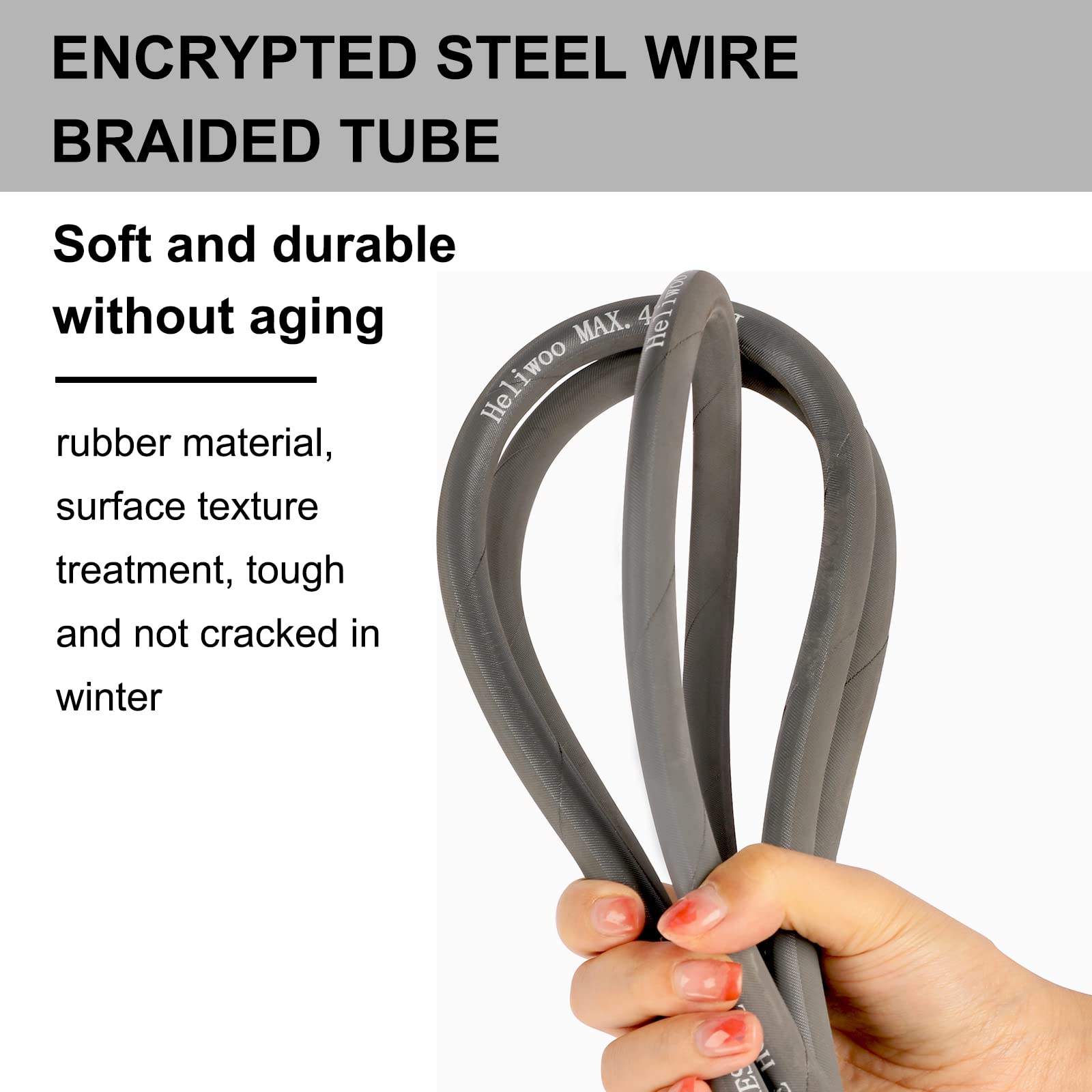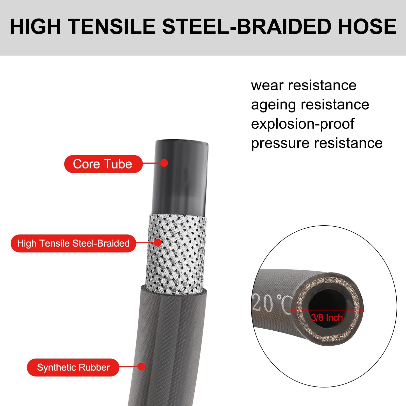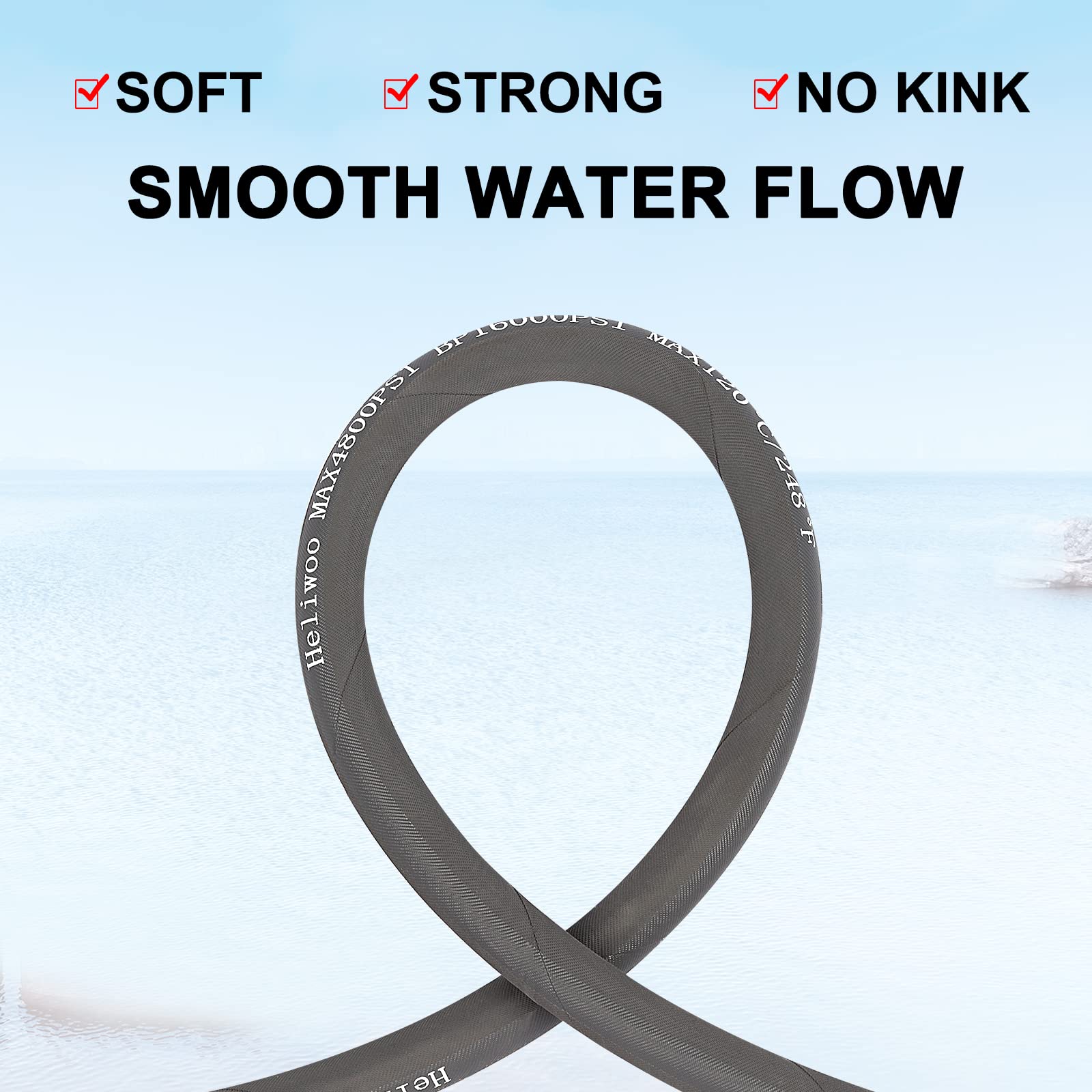 ✅【Hot Water Applicable】- This 3/8 inch pressure washer whip hose is specially designed for both hot and cold water use. The maximum temperature for water is up to 120°C / 248°F. Rated for 4800 PSI working pressure.