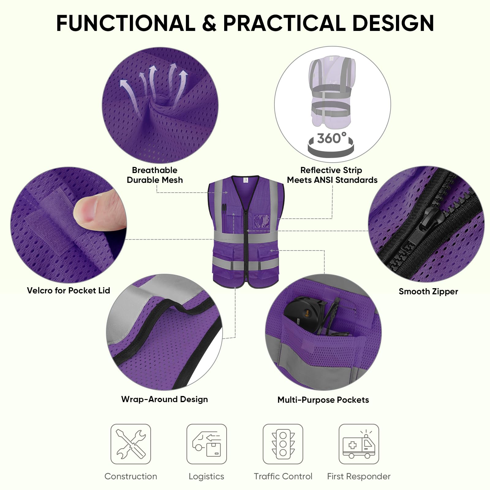 [WIDE APPLICATIONS] Our safety vest for men and women who get the job done. Great for construction workers, truck drivers, warehouse workers, traffic controllers, and first responders.