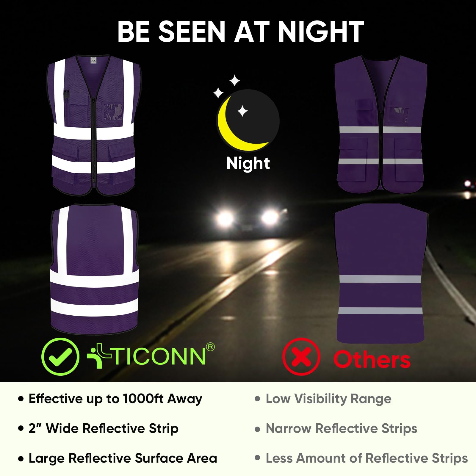 [ALL WEATHER CONDITIONS] Safety is our #1 priority. We want you to be seen in all weather conditions. 2 inches wide hi-vis reflective strips are wrapped 360° so you can be seen in all directions.