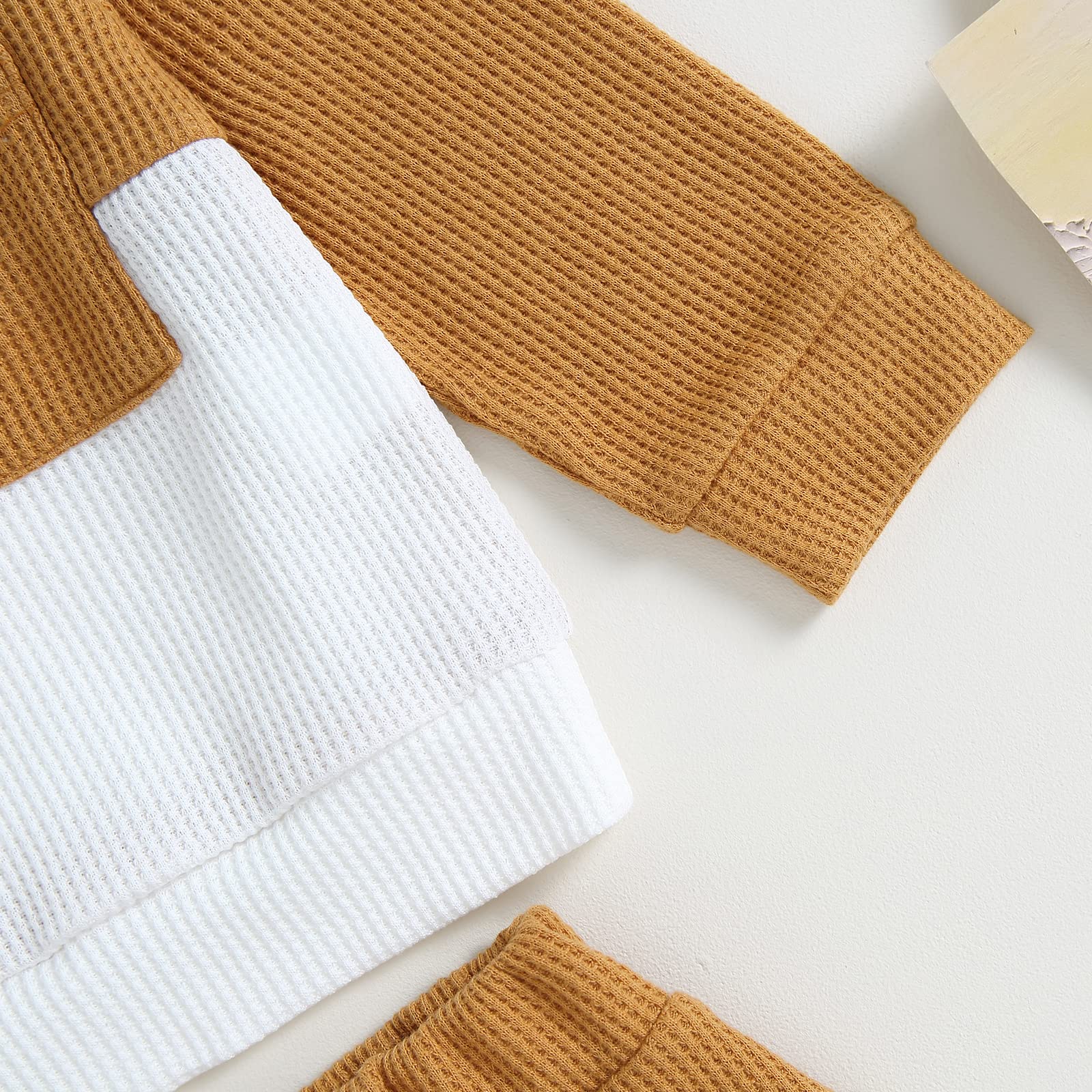 Design: Toddler boys casual 2pcs outfit sets, color block long sleeve crew neck pocket pullover sweatshirt jumper tops, drawstring casual long pants joggers sweatpant, toddler baby boy sweatsuit, cute toddler boy fall clothes.