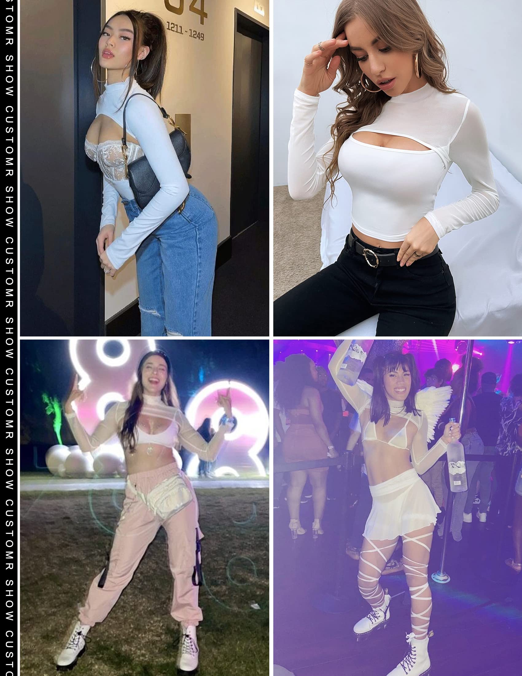 ❤Features: This long sleeve see through crop top features mesh material, mock neck, slim fit, pull on closure and perfect sleeve length. Simple but super trendy and eyecatching!