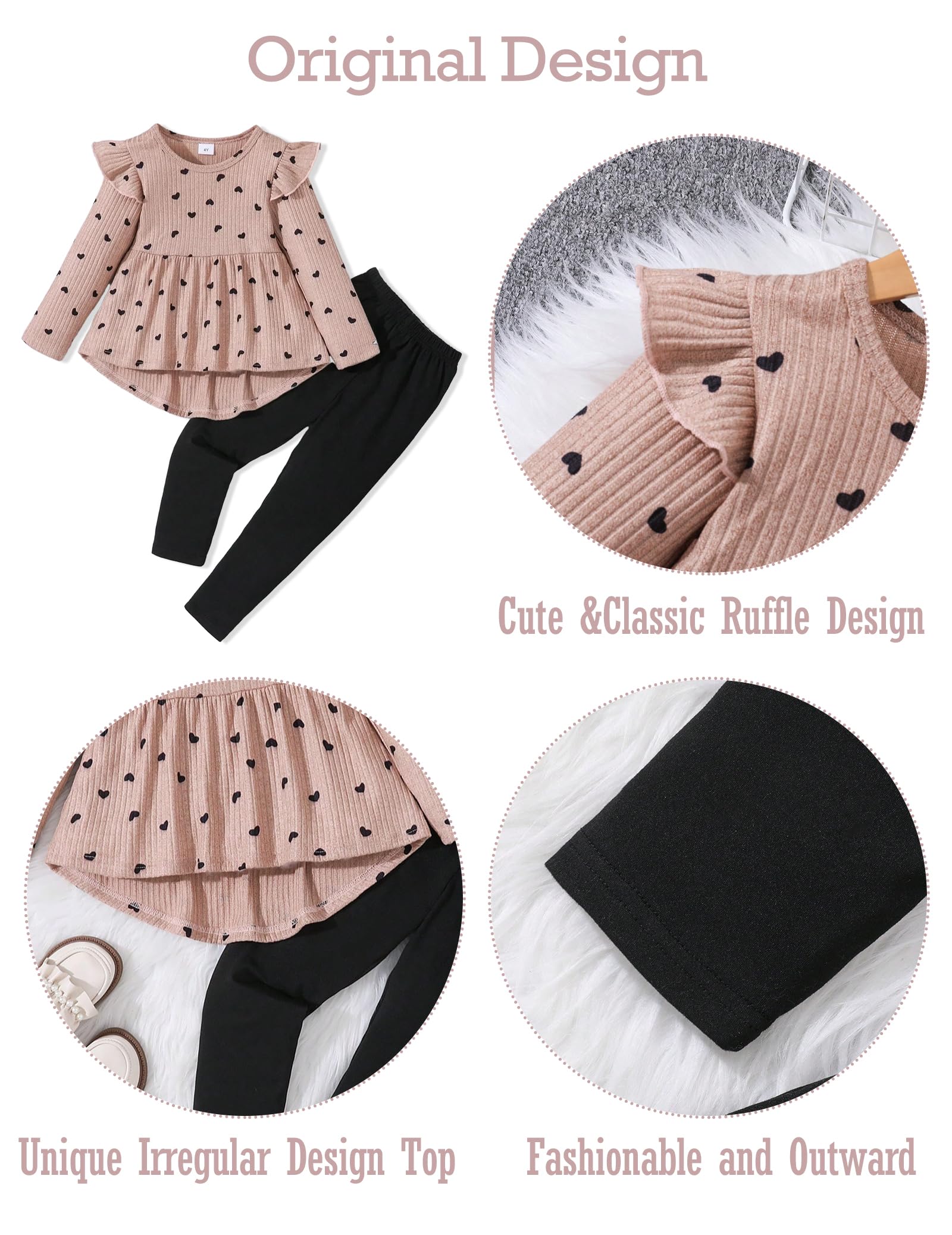 ✅ Soft & Breathable Fabric for All-Day Comfort – Crafted from a lightweight cotton blend with cotton polyester and spandex, this girls' clothing set offers exceptional breathability, softness, and stretch. Perfect for sensitive skin, it keeps your little one cozy and comfortable all day long, whether she's playing indoors or enjoying the fall winter outdoors.