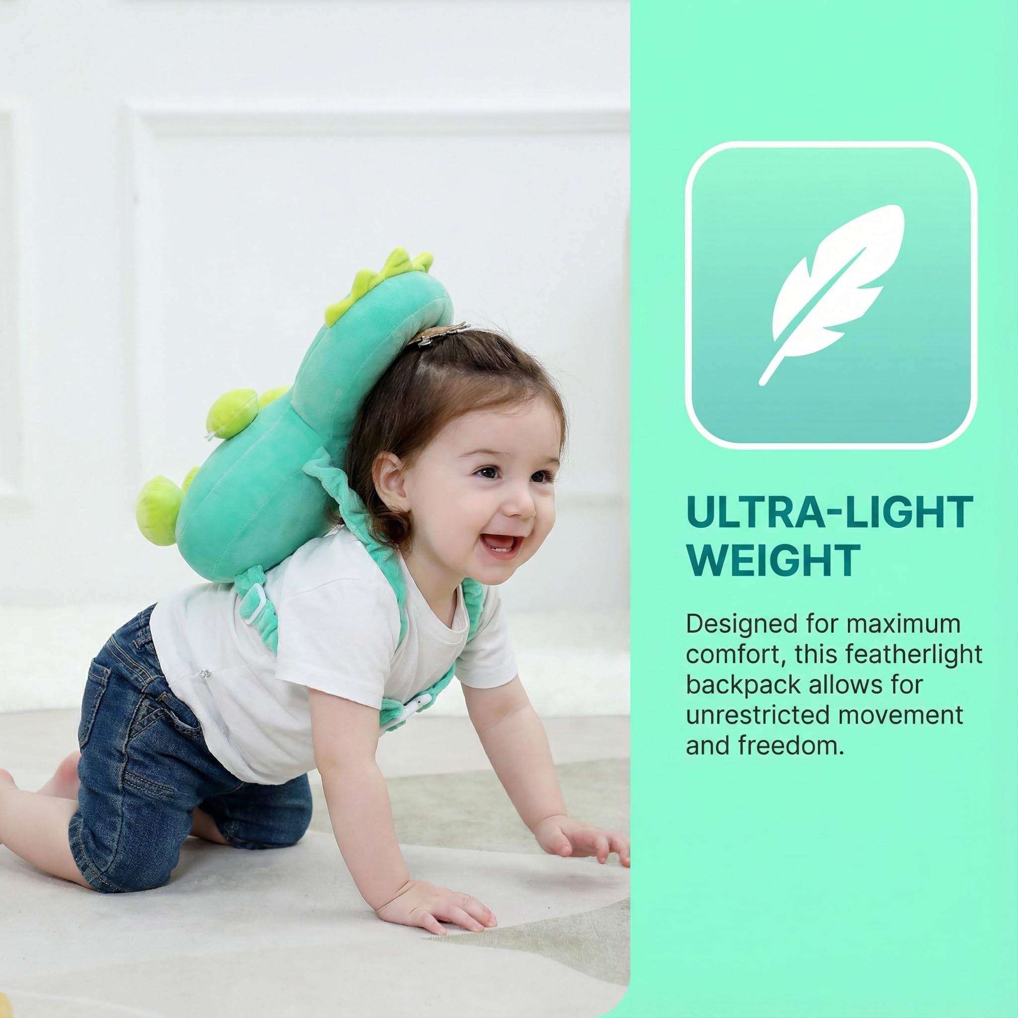 This head protector backpack for baby cushions falls, safeguarding delicate heads. Perfect for active babies with a soft, padded design that offers comfort and protection.