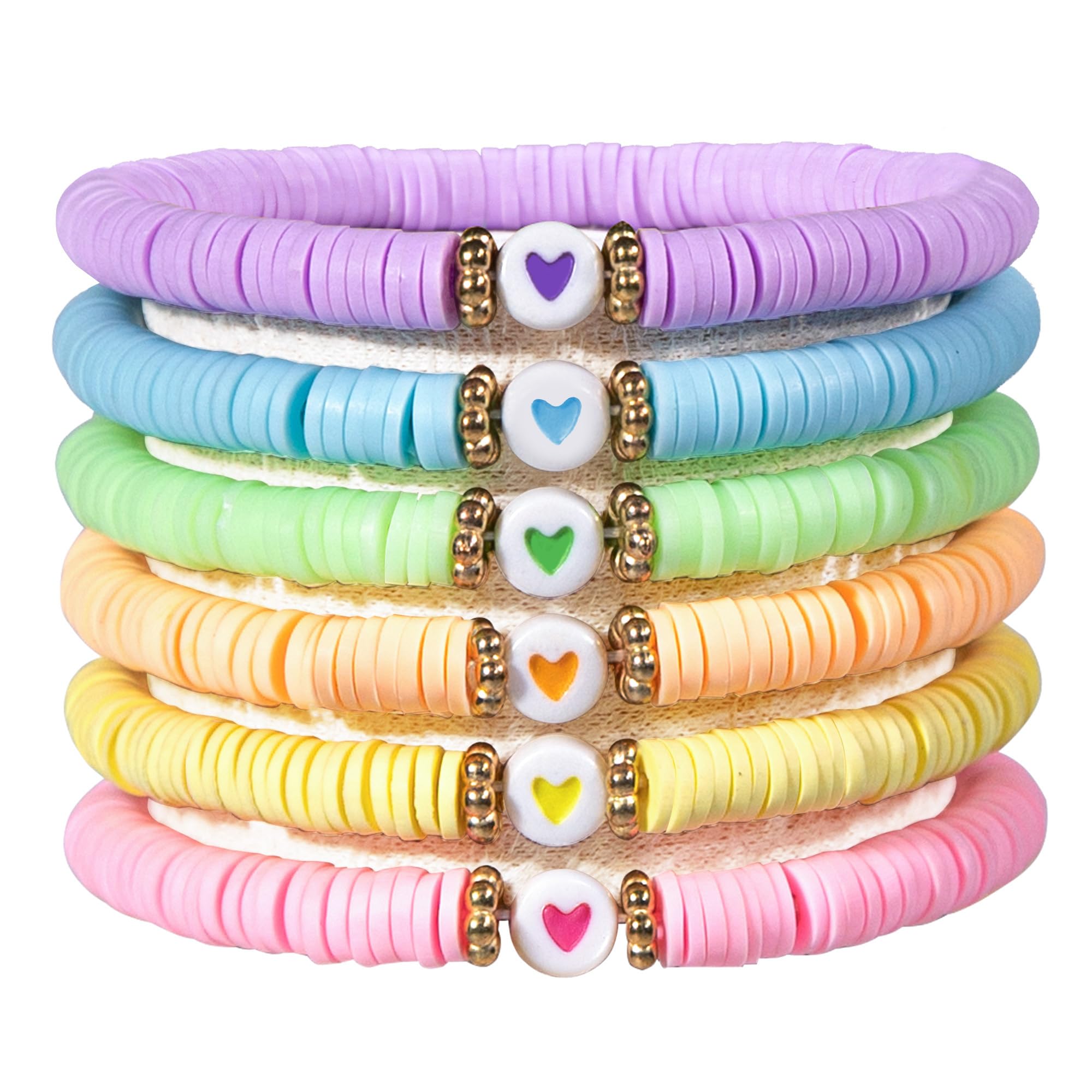 PREPPY BRACELETS SET: Our preppy bracelets set includes a variety of styles, including heart-shaped heishi surfer beads, colorful clay beads, and boho disc beads. The bracelets are designed to be stacked together or worn separately, making them versatile for different occasions and outfits.