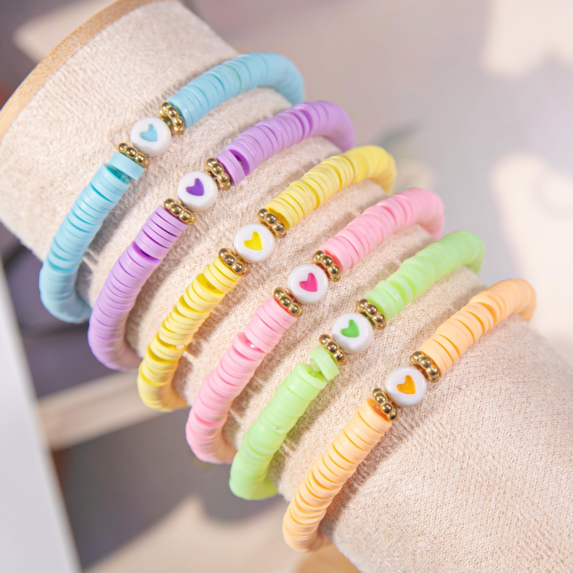 COLORFUL CLAY BEADS: The colorful clay beads in our preppy bracelets set are made from natural clay and are available in a variety of colors, including pink, yellow, blue, and green. The beads are lightweight and durable, making them perfect for stacking with other bracelets or wearing alone.