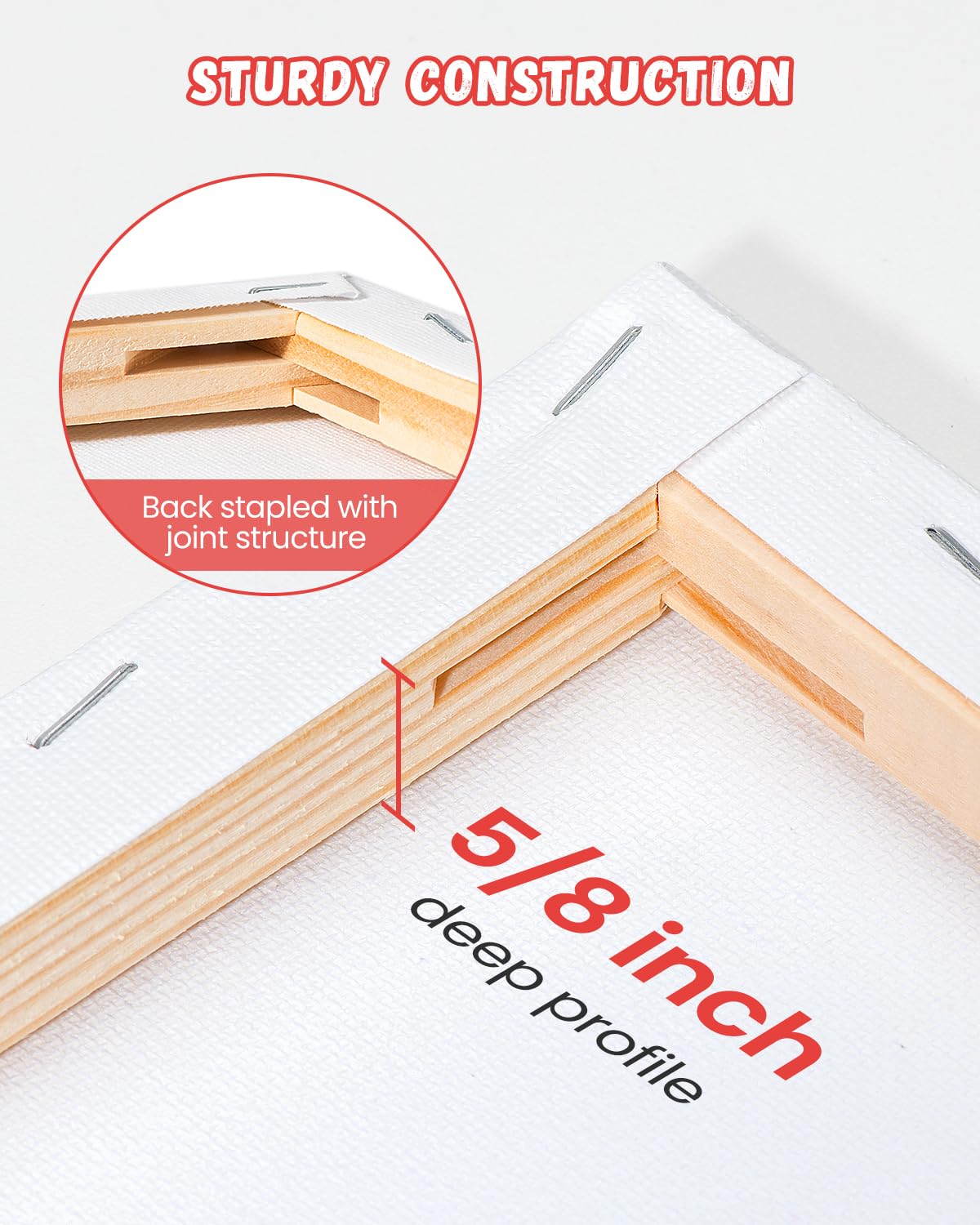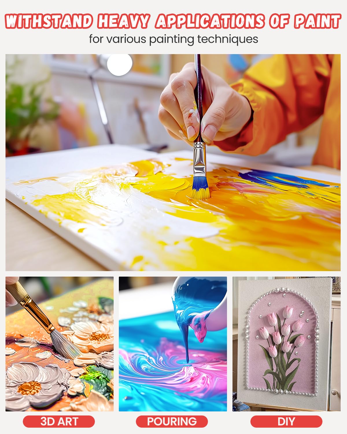 【100% Wood Frame】The paint canvas is nailed firmly to the pinewood frame. 5/8 inch thick, it's sturdy and doesn't deform easily. The excellent quality multi canvases will enhance your painting experience.