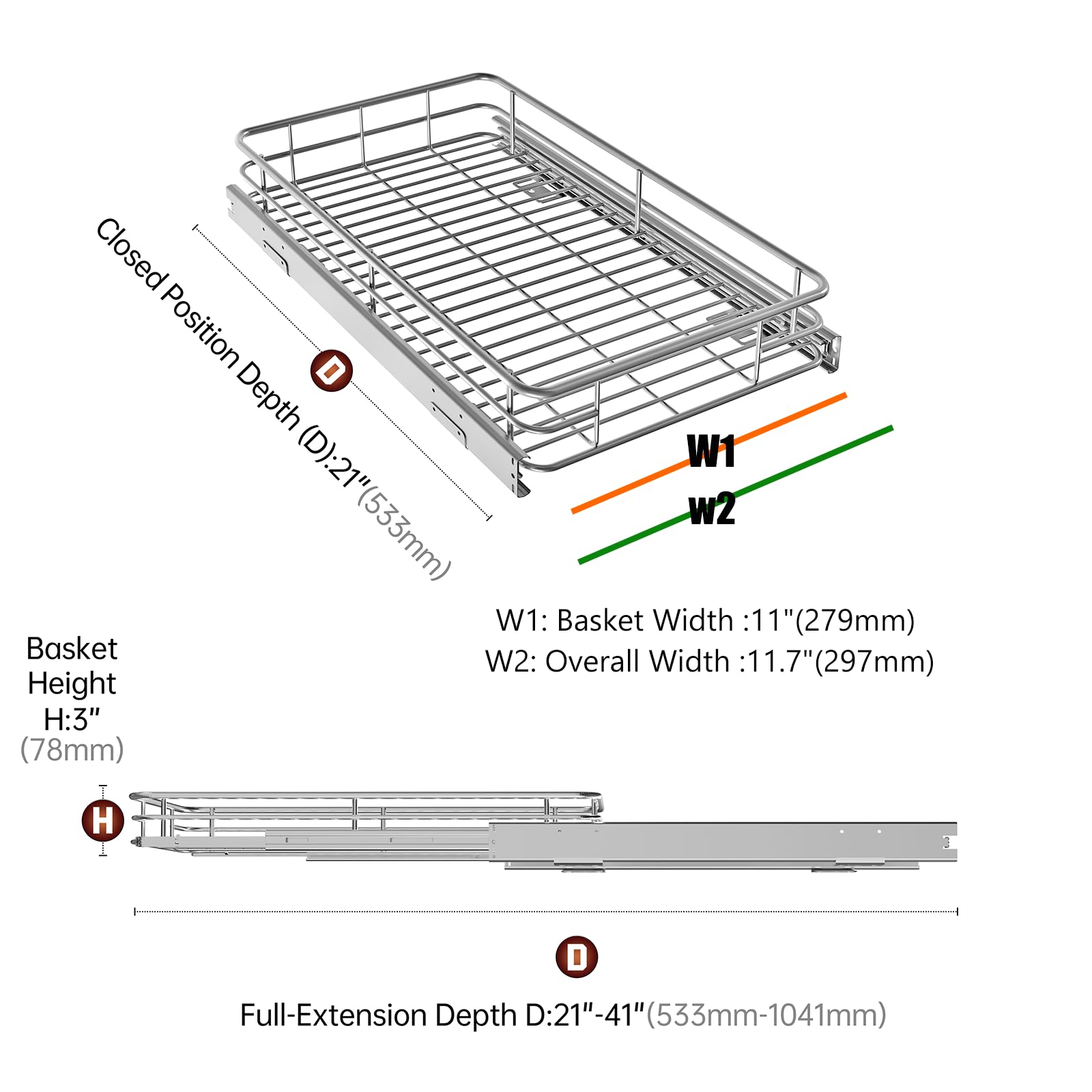 Available in Multiple Sizes: We offer pull-out baskets in multiple sizes, Including widths of 11, 14, 17, 20, and 22 inches, Designed to fit most standard cabinets and accommodate your various needs