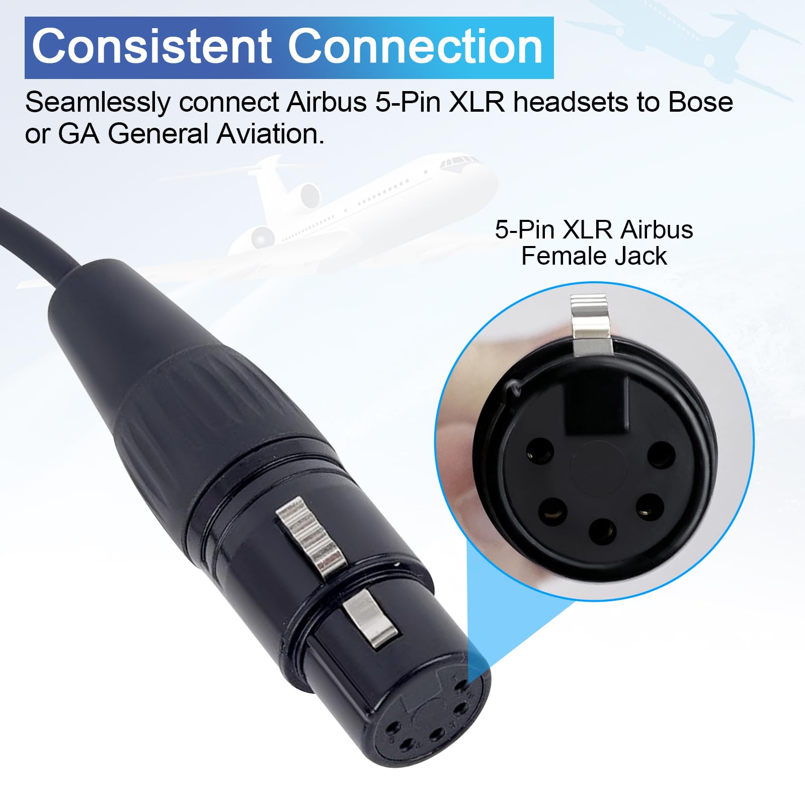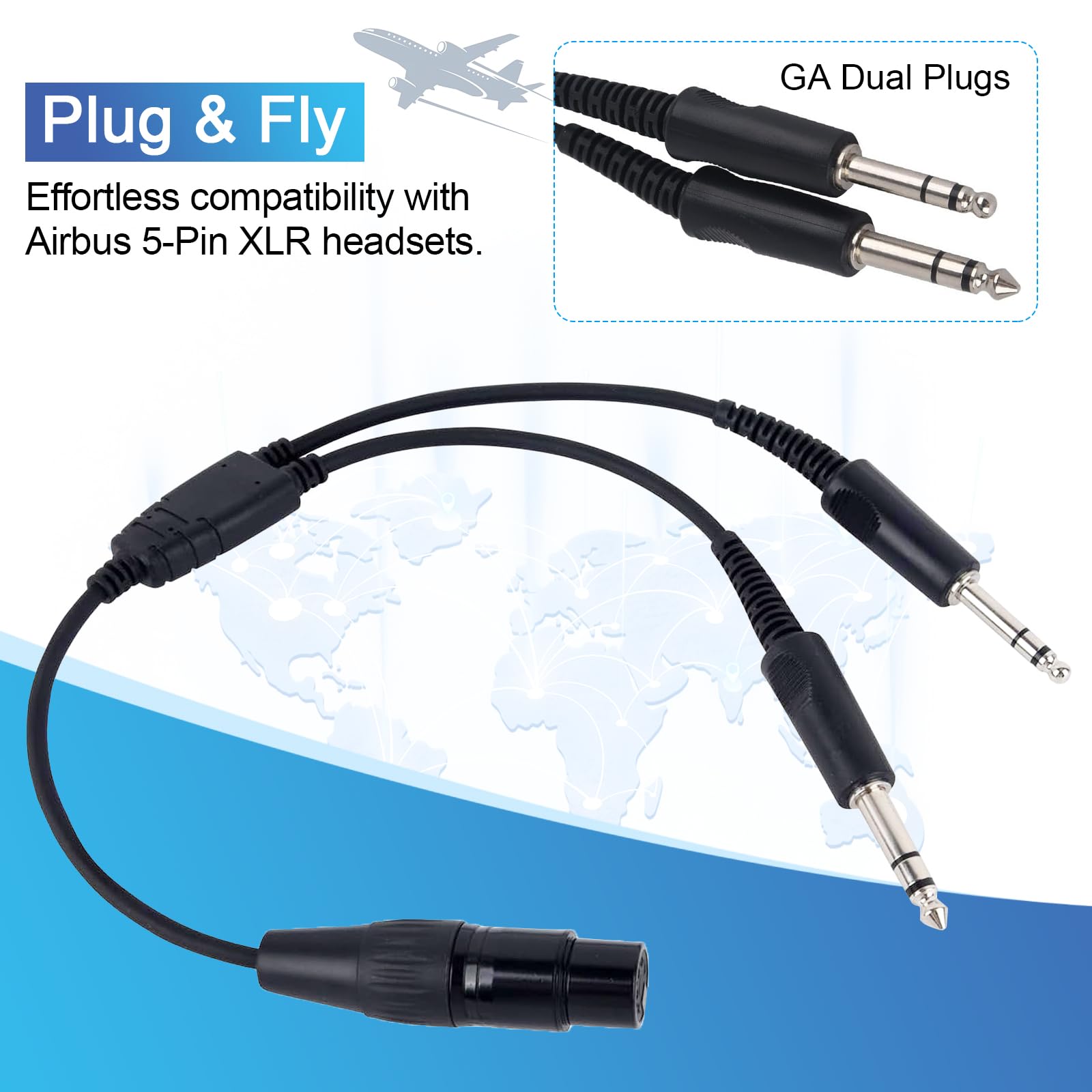 【5-Pin XLR Jack】Easy convert your airbus xlr 5 pin headset into GA twin plug headset. This headset adapter cable allows you to connect your Airbus XLR 5 pin plug headset to GA dual plug aviation headset. Connecting the headset adapter to compatible with GA dual plugs female jack is a breeze. This saves the pilot who flies both types of aircraft from having to own and carry two headsets.