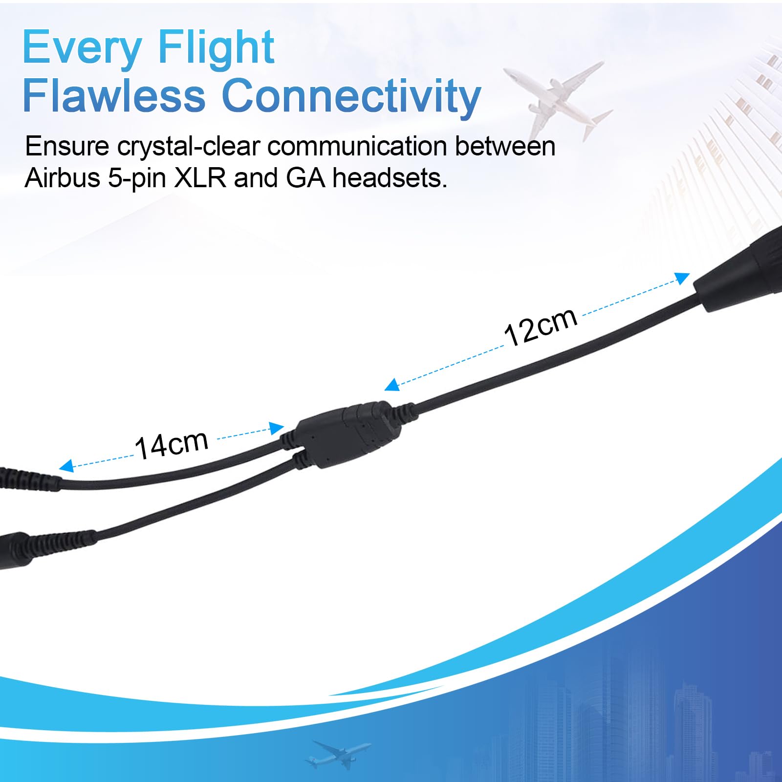 【Compatibility】Connect 5 Pin XLR plug Airbus headset to trun General Aviation (GA) Dual Plugs Headset. One adapter cable, two types of aircraft headset.