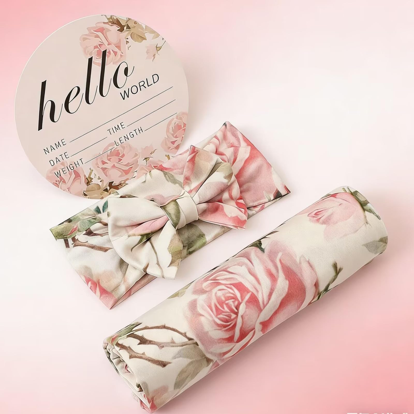 The newborn receiving blanket set includes: 1PCS blanket +1PCS headband+1PCS paper card