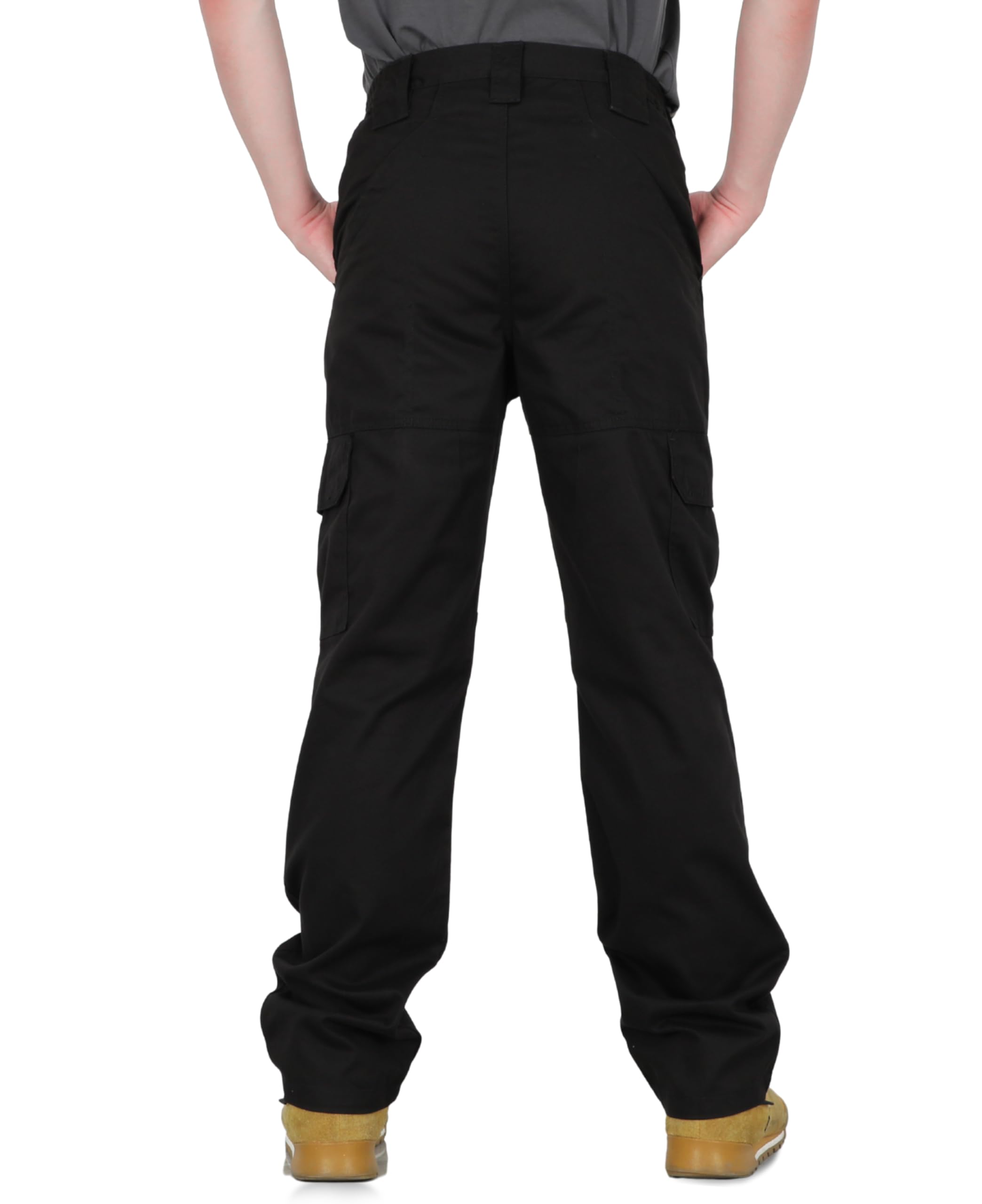 Double needle stitching on outseam. Left and right cargo pockets at the thighs with flaps to keep items secure