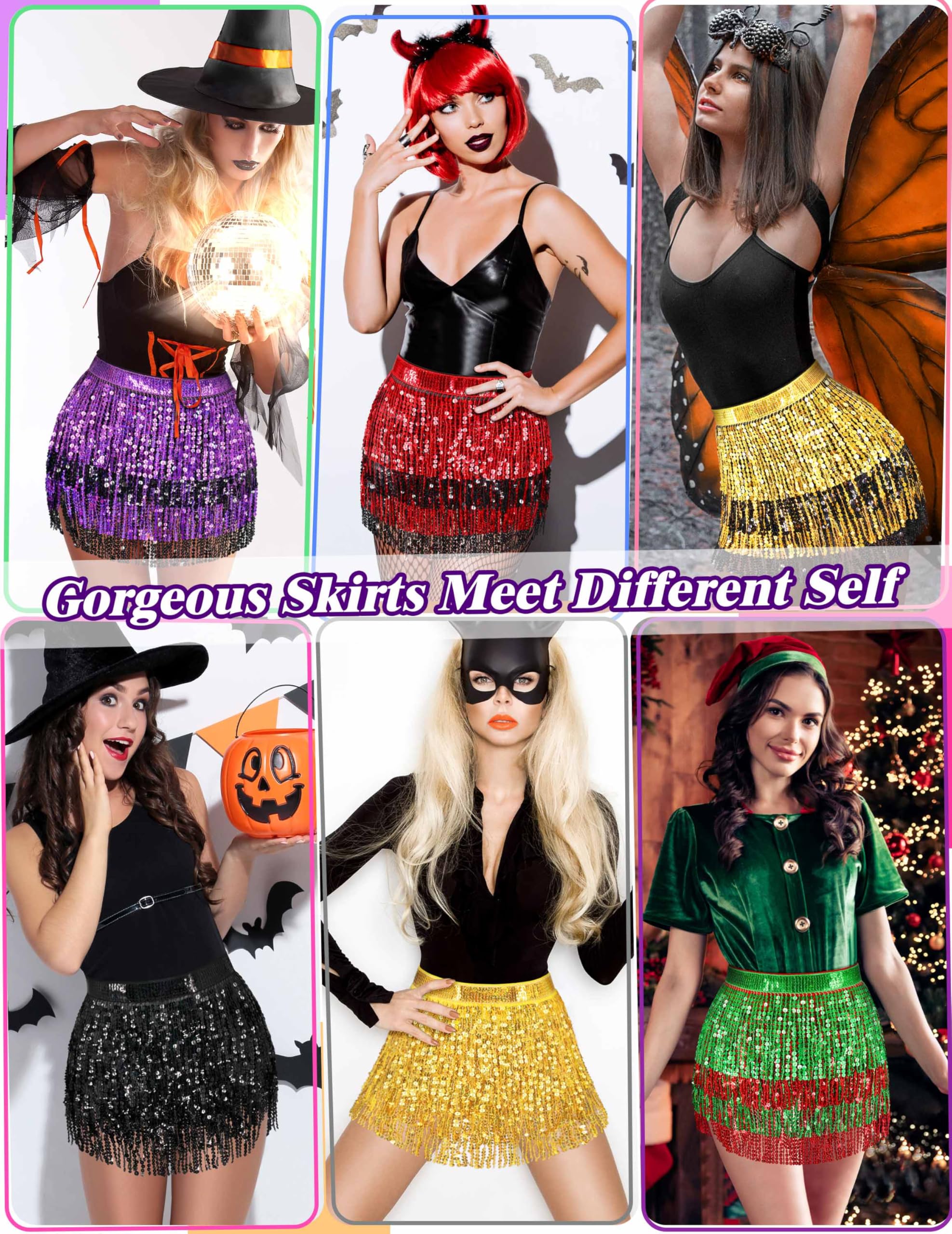 HIGH-QUALITY MATERIAL: Our sparkly skirt is made of excellent 100% Polyester with beautiful fringes and sequins, which is lightweight, skin-friendly and durable. Besides, the tulle lining under the sequins is comfortable and breathable, so you will feel great when you wear this sequin skirt.