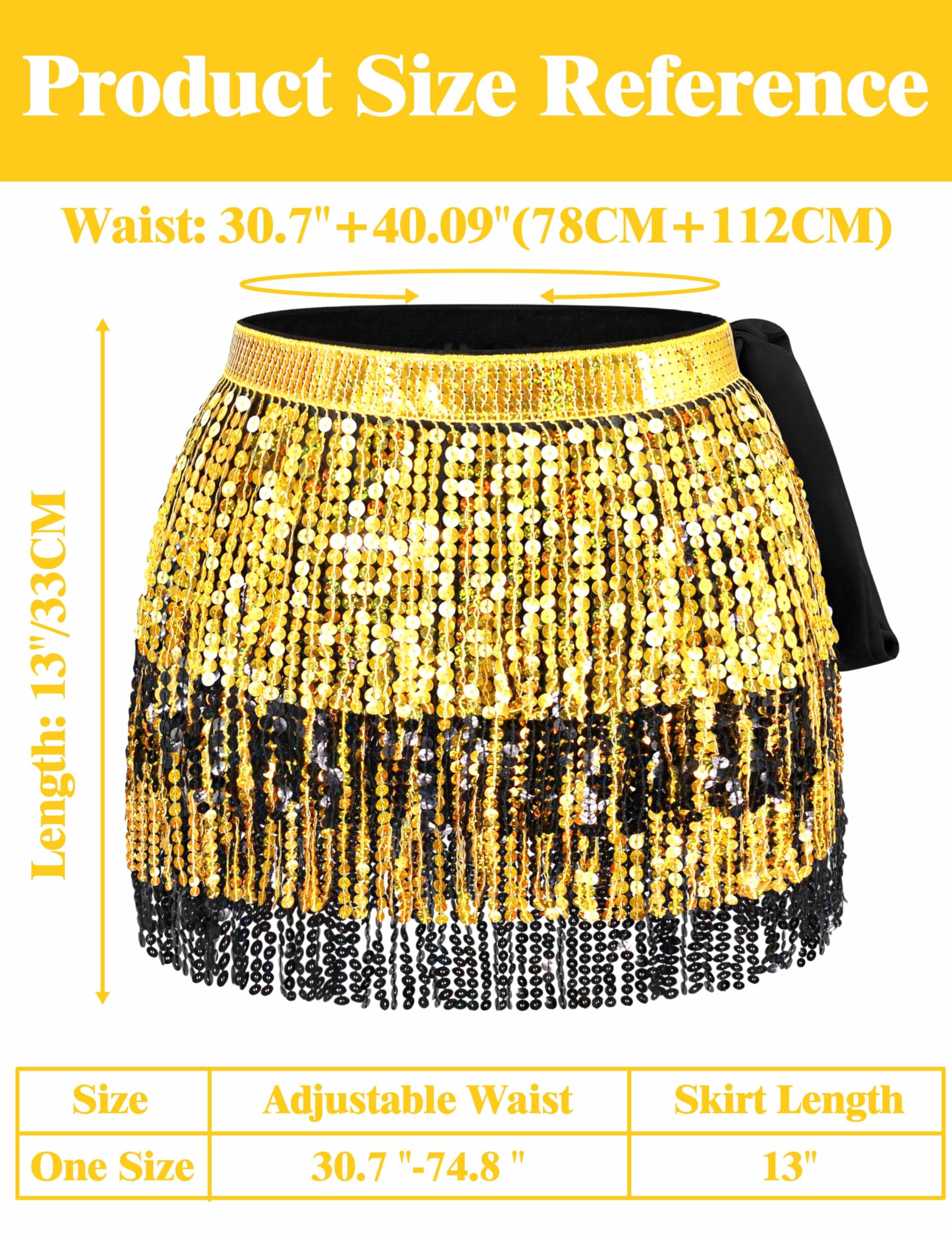 ONE SIZE FITS MOST: The tassle skirt is designed of lacing belt , which allows you to adjust the length of the belt to suit your waistline. The waistline of belly dancer skirt can be adjusted approximately from 30.7'' to 74.8". The total length of the sequince skirt is 74.8''(190cm), the length of belt is 44.09''(112cm), the fringe length is 13''(33cm). It is not only durable, but also very easy to put on and take off.