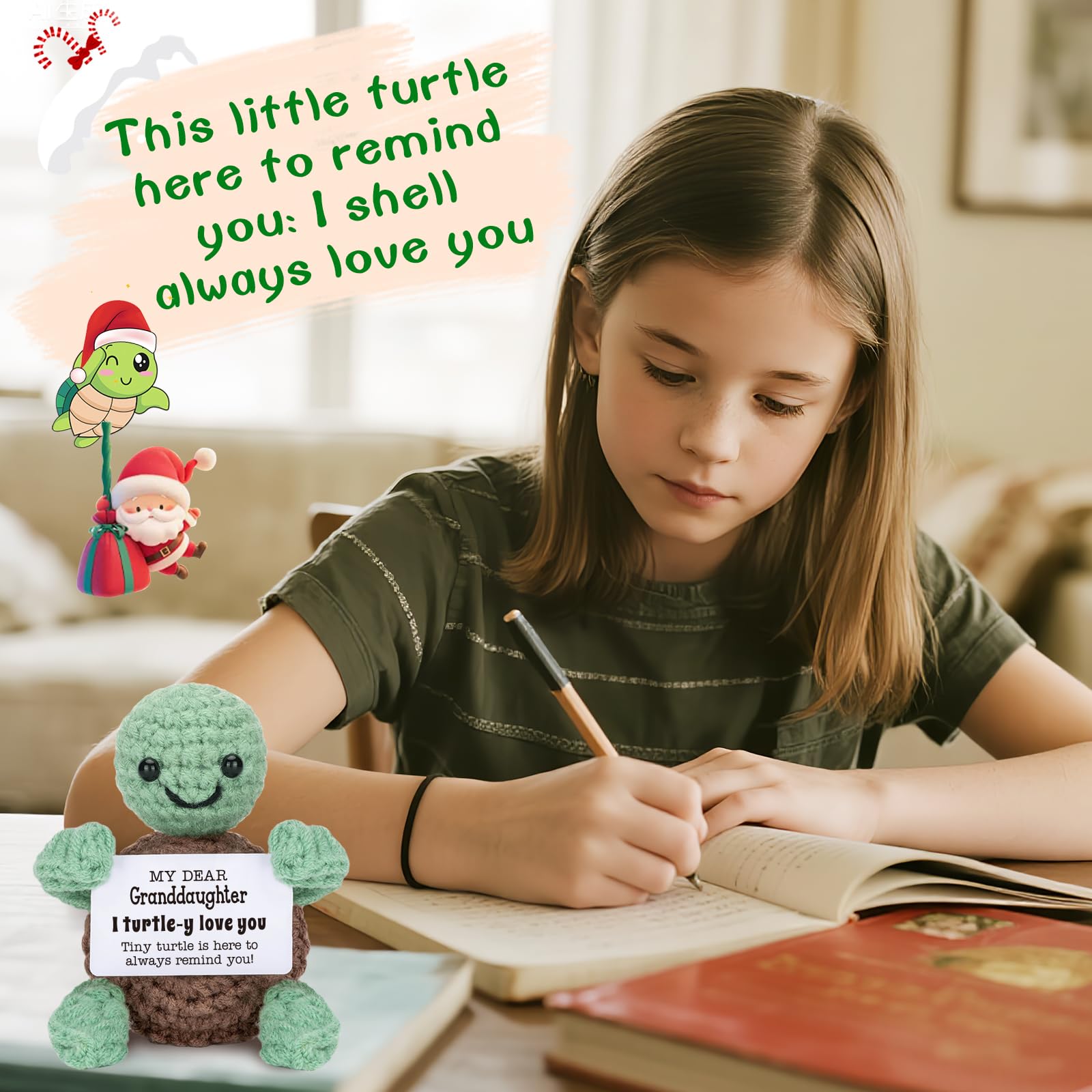 Cute Gifts For Granddaughter: The funny tiny turtle with charming expressions and the warming messages "Granddaughter, I turtle-y love you" on the cards will lift your her spirits, making her a delightful addition to her learning space or living area