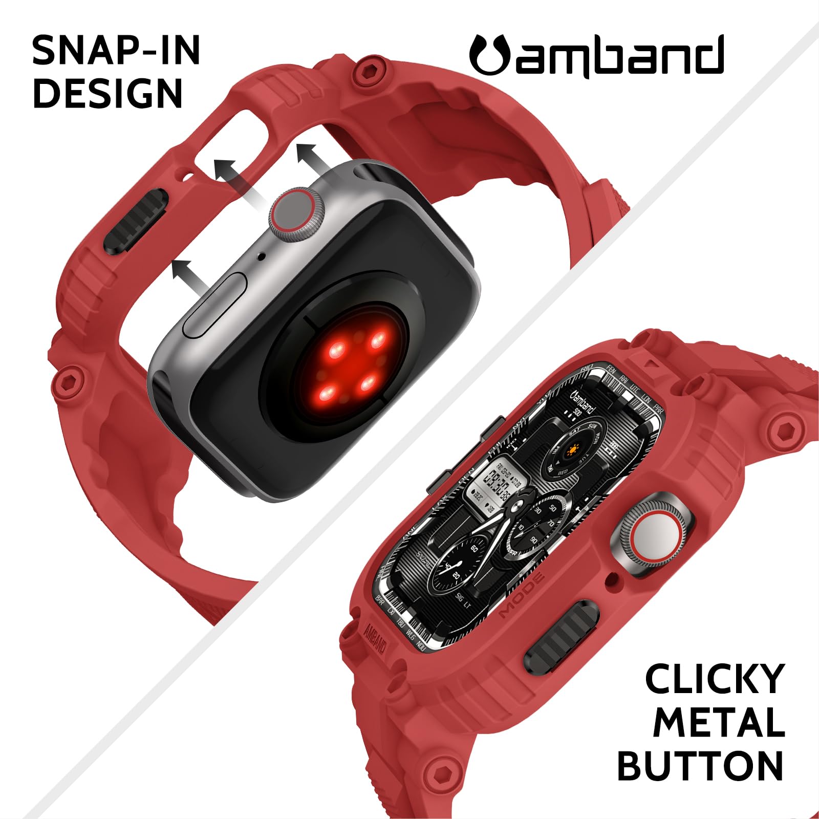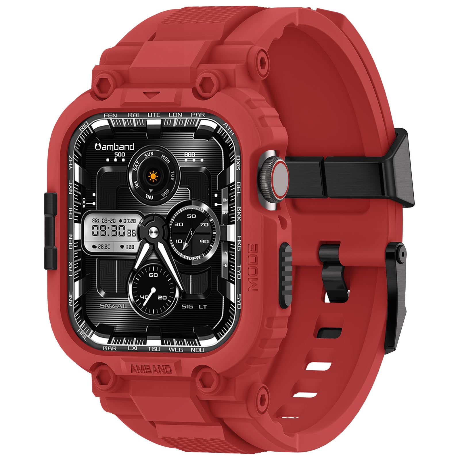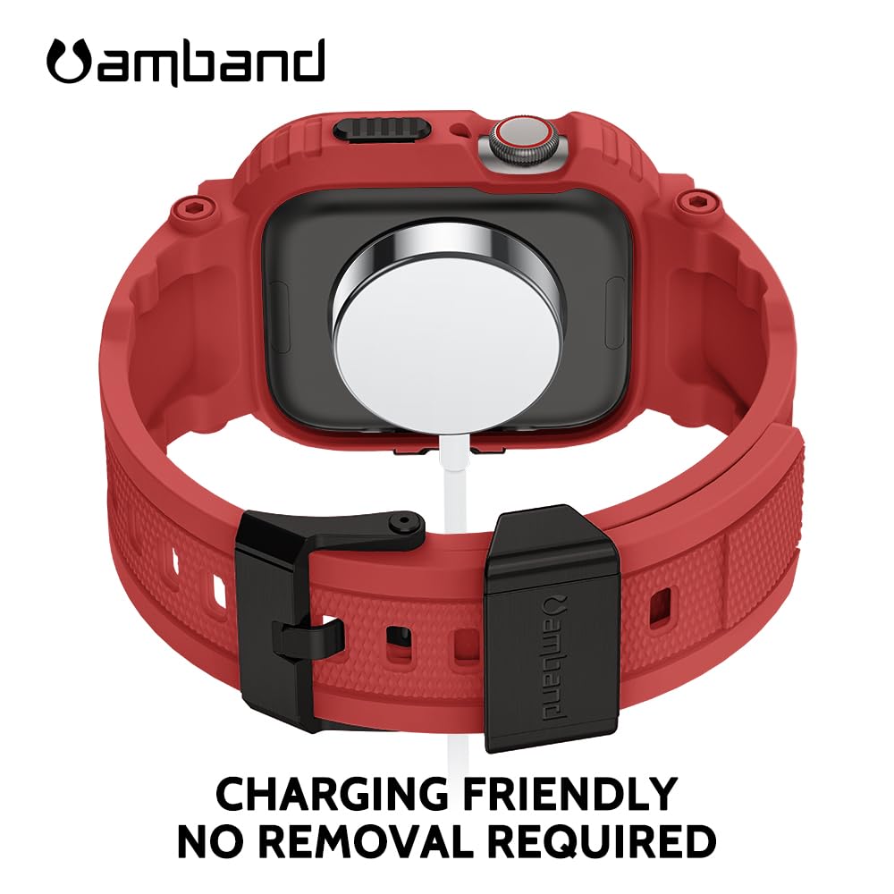 Description amBand M1 Sport Case with Band for Apple Watch Ultra 3/2/1 & SE 3/2/1 & Series 11 10 9 8 7 6 5 4 3 49mm 46mm 45mm 44mm 42mm 41mm 40mm 38mm, Shockproof & Scratch Resistant Rugged Bumper for Men