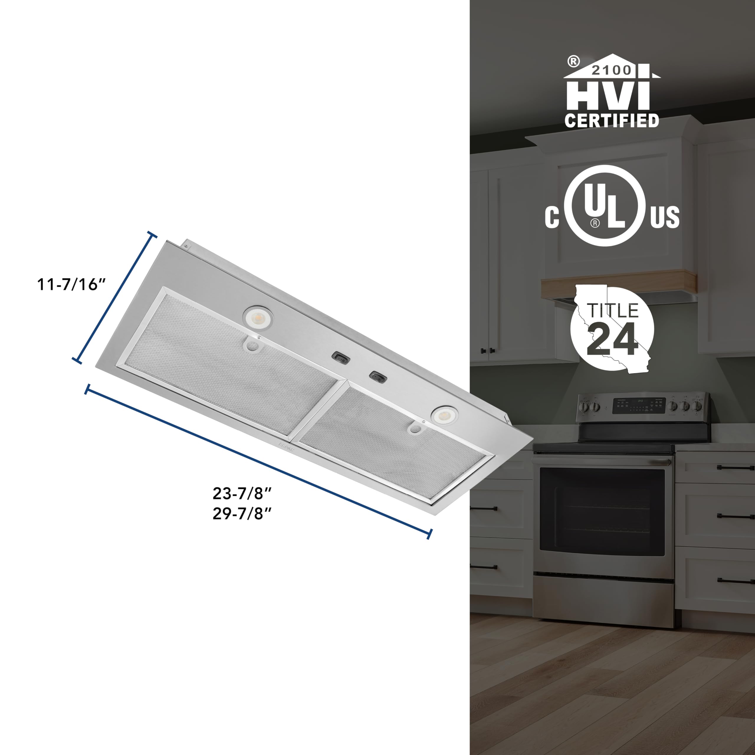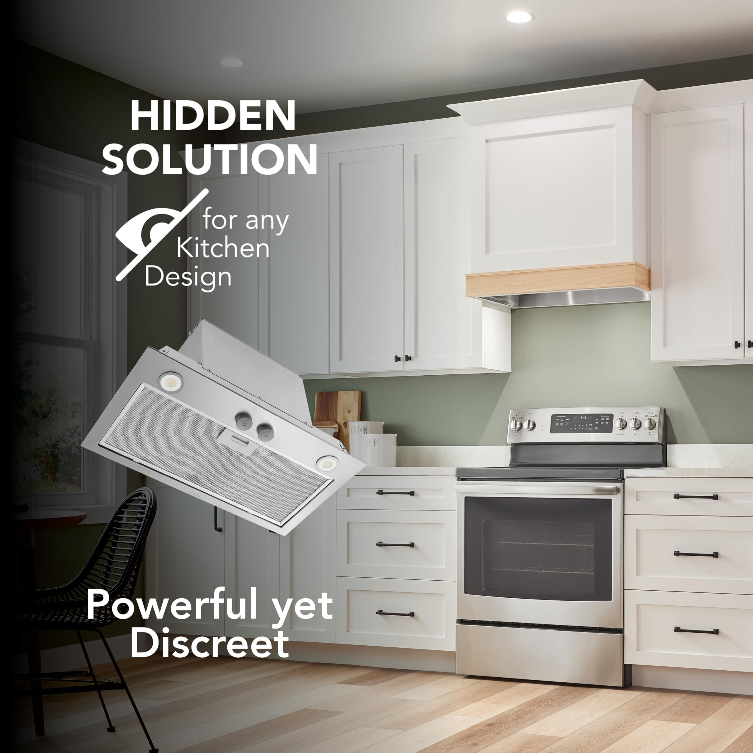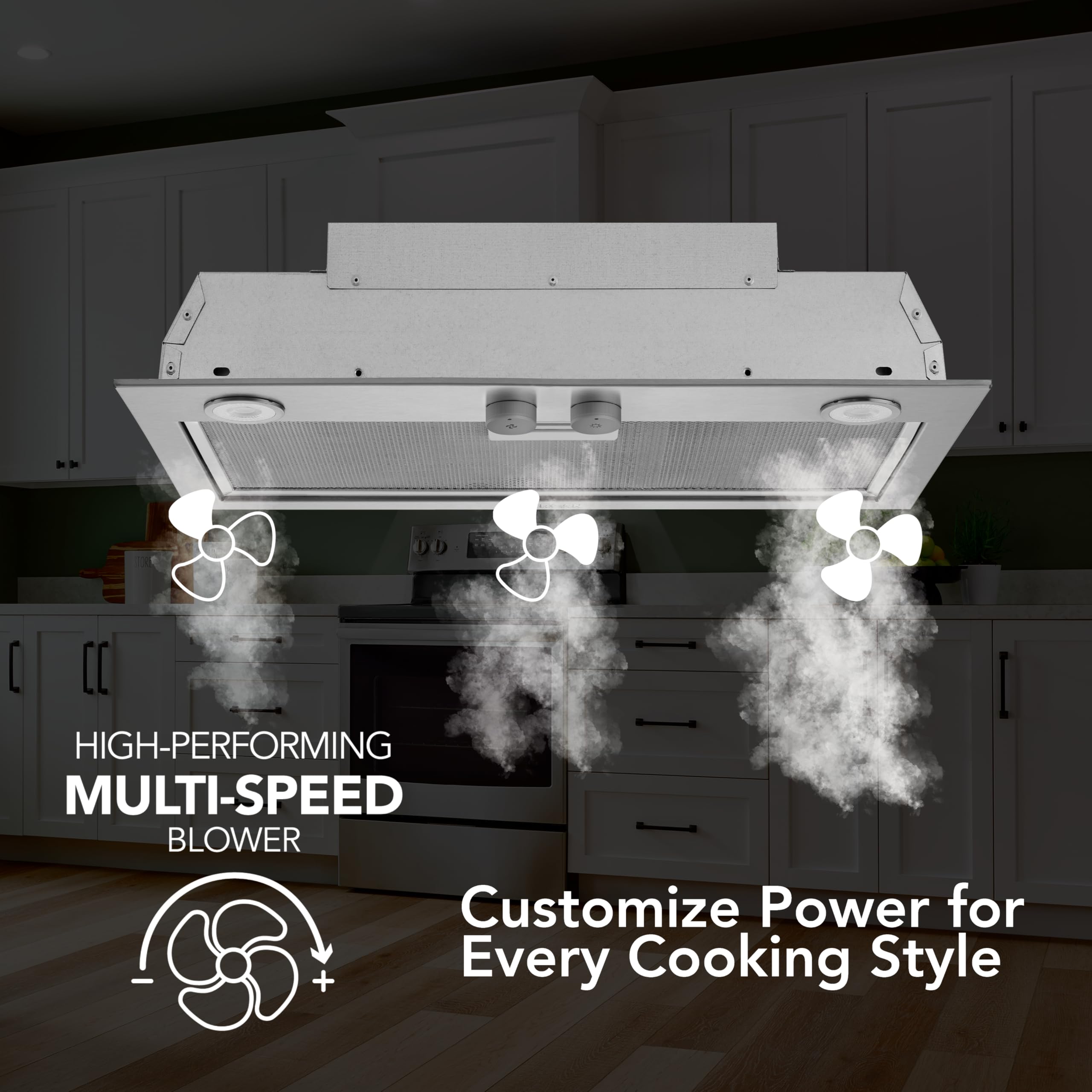 BUILT-IN POWER PACK INSERT: This Energy Star Certified insert provides powerful ventilation to remove smoke and cooking pollutants from your kitchen with a 3-speed blower at 450 Max CFM while also providing energy cost savings.
