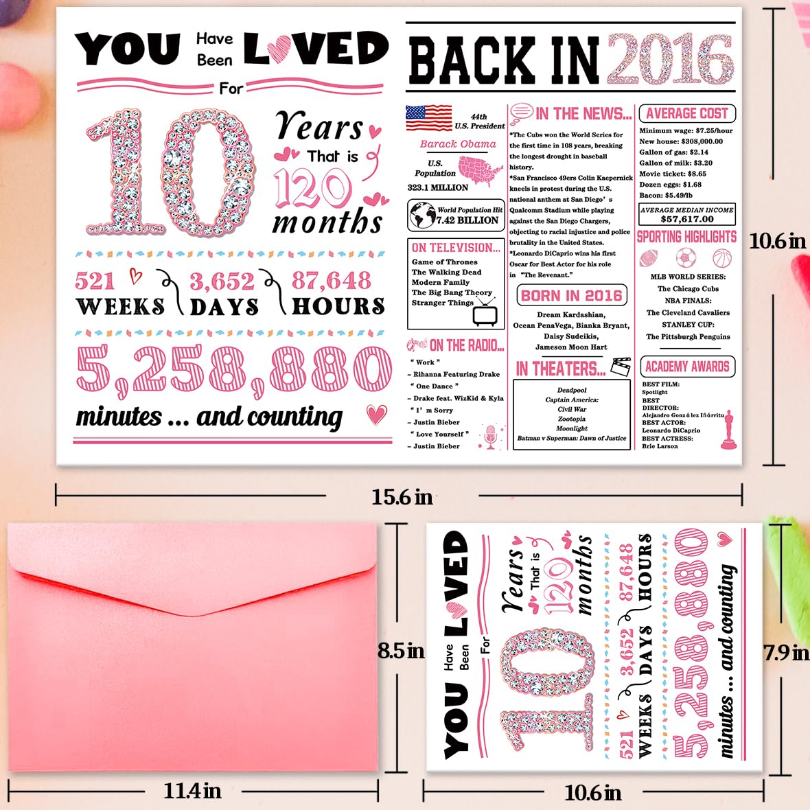 3. 10th Birthday Decorations The set includes a high-quality pink envelope, 2 sealing stickers, and a protective bag—perfect for gifting. The card itself is made from superior 350gsm thick paper, giving it a standout, decorative feel for the celebration.