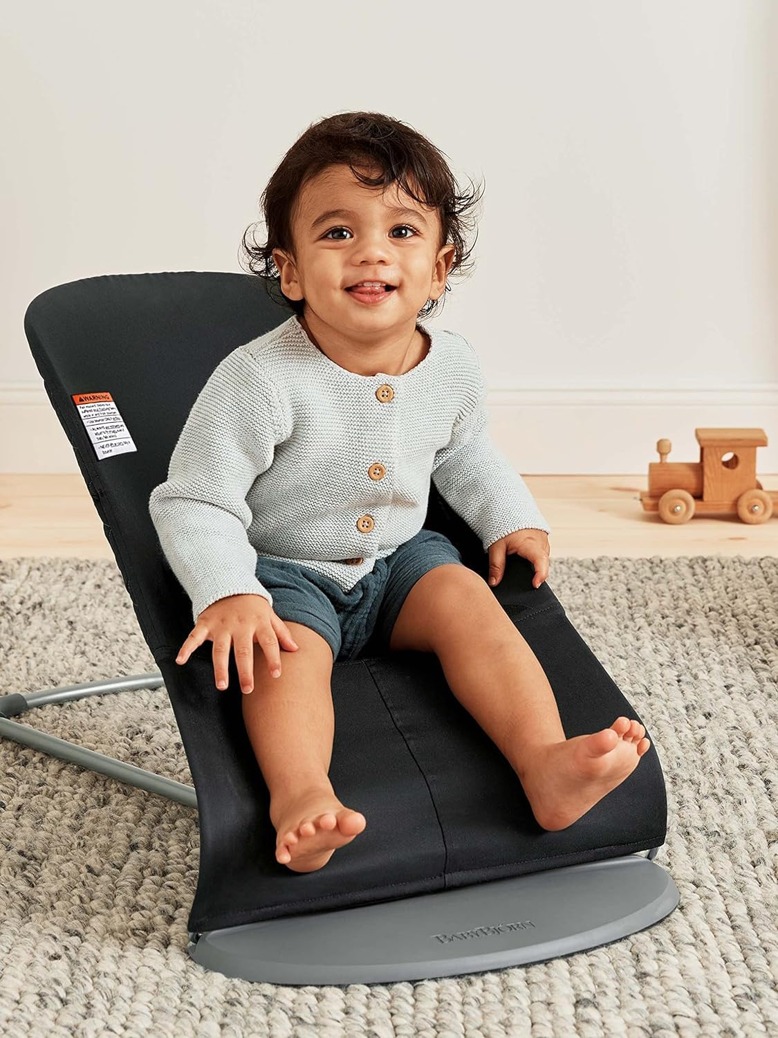 Our bouncer rocks gently when your baby waves their arms and legs. No batteries are required—our baby bouncer runs on pure fun!