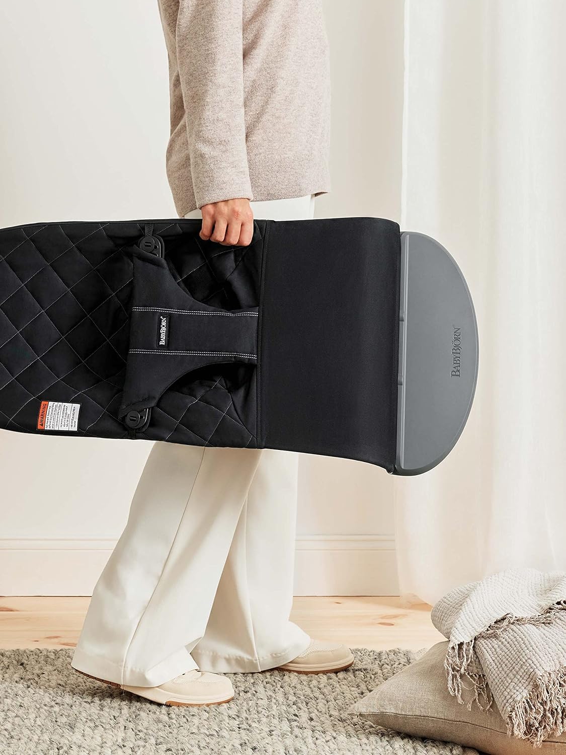 Our baby bouncer offers natural rocking generated by your baby’s own movements, unlike a battery or electrically powered baby swing. This means that our baby bouncer weighs less, making it easier to move around and take with you.
