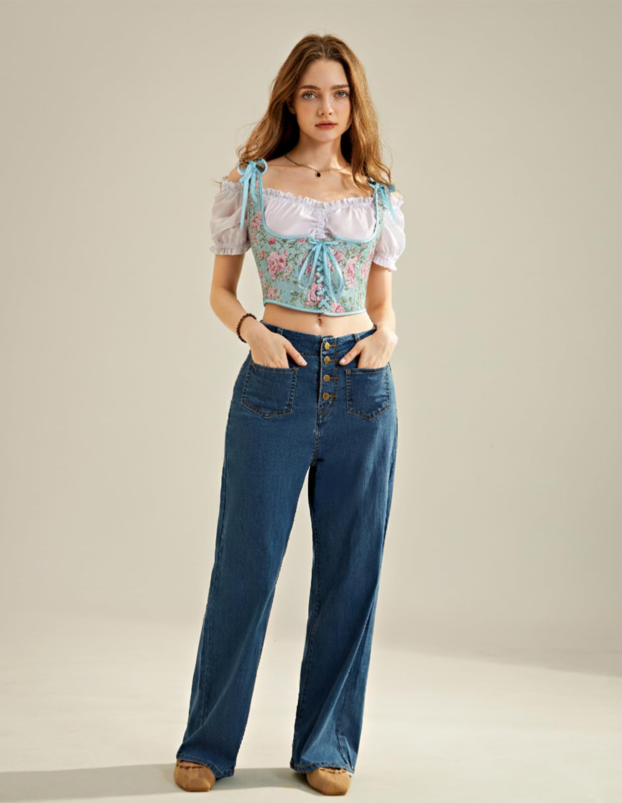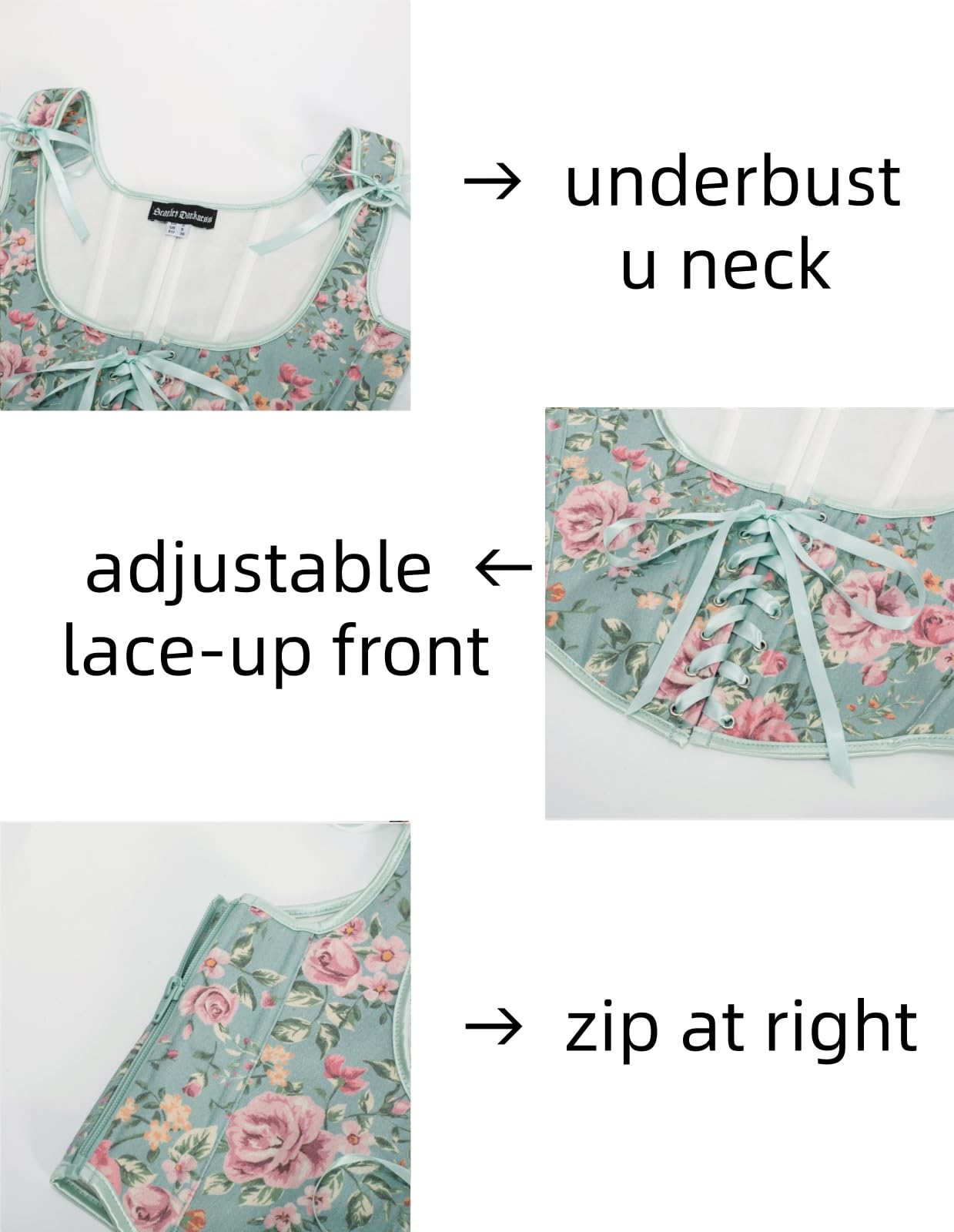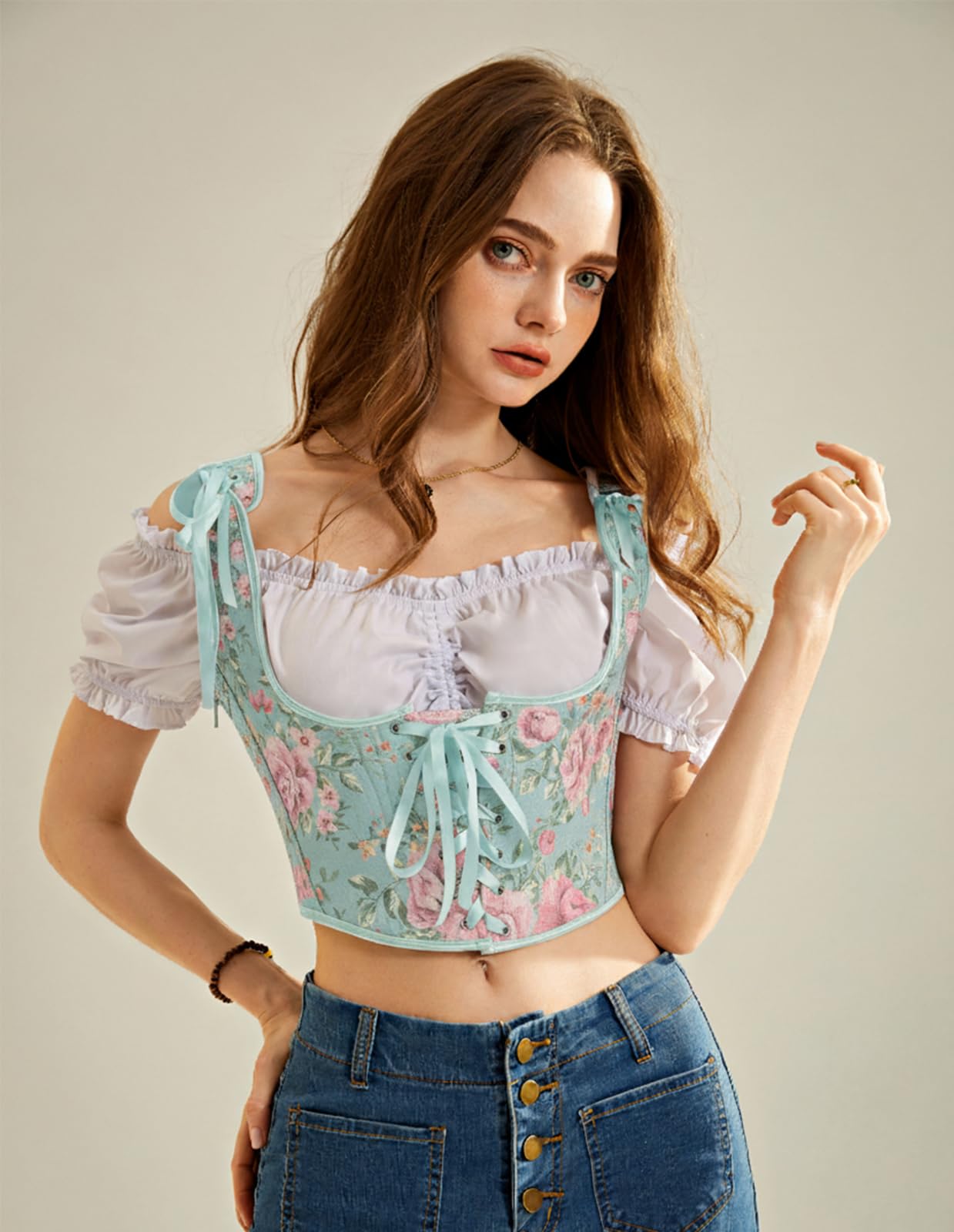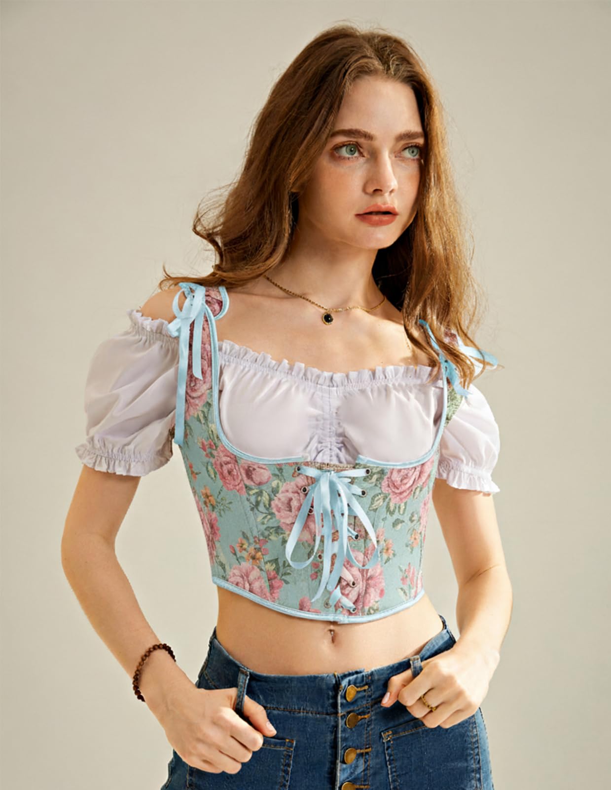 Customizable Fit with Adjustable Tie-Shoulders and Lace-Up Front: The tie-shoulders of this floral corset can be easily adjusted to provide the perfect fit for your unique shape. Whether you prefer a snug or relaxed fit, you'll find the perfect comfort level with these adjustable ties. The lace-up front not only adds a touch of elegance to the bra's design but also allows for further customization. You can adjust the tightness to your preference, ensuring a comfortable and secure fit.