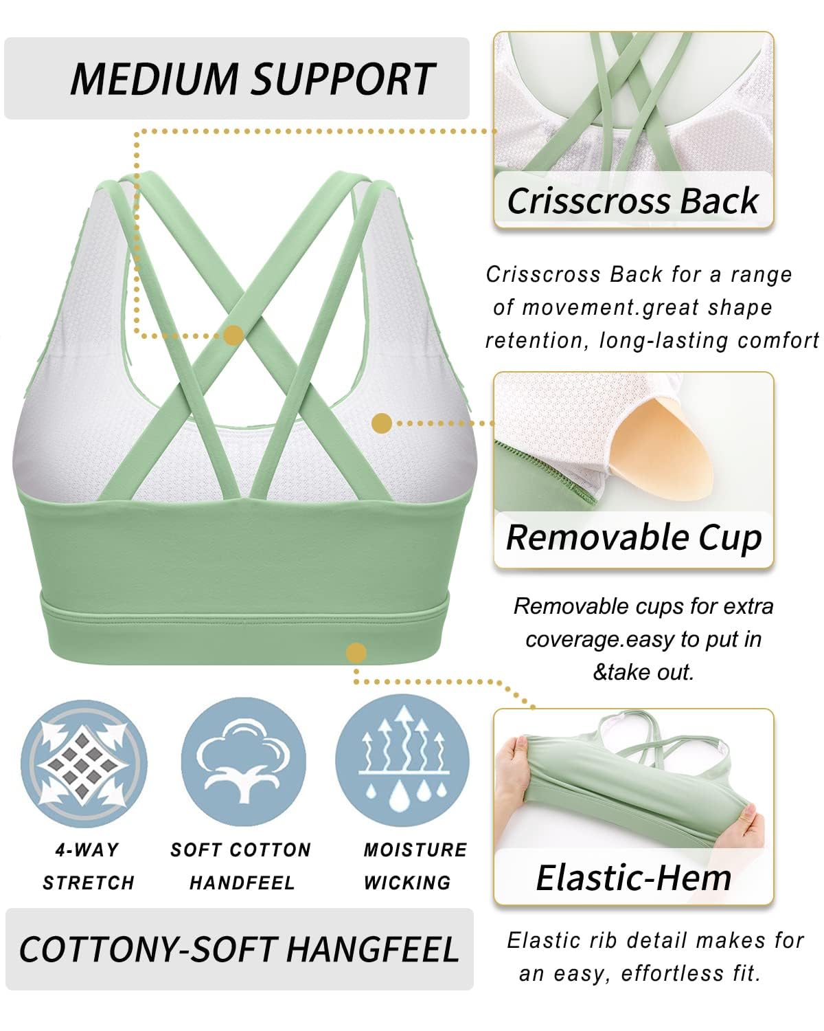 WHY WE MADE THIS: We designed this bra with a strappy, crisscross back for a range of movement. Made with moisture wicking fabric that's sweat-wicking and four-way stretch that offers great support and coverage with a cool, give you smooth COTTONY-SOFT HANGFEEL, great shape retention, long-lasting comfort—if you want it.