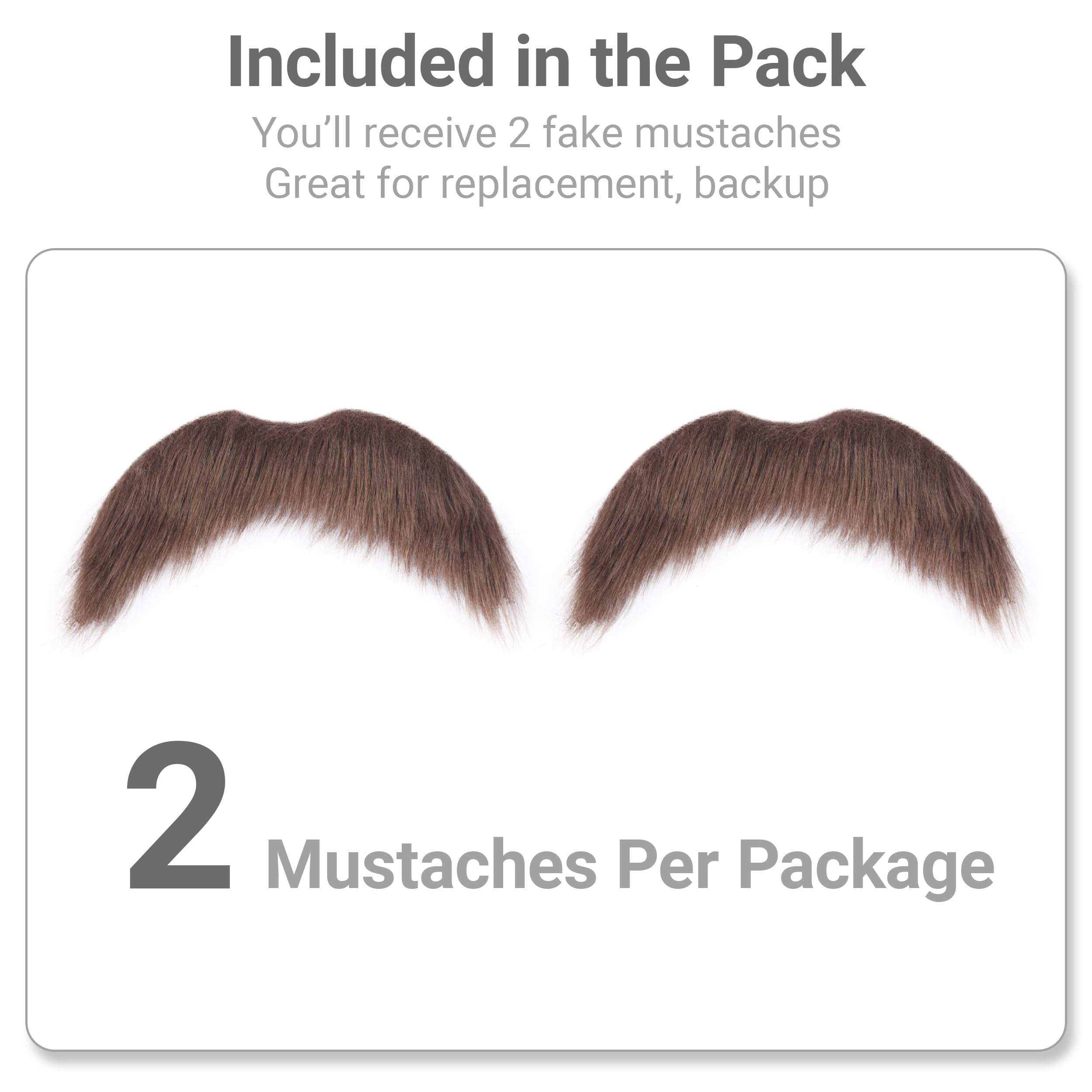 Each package comes with 2 brown fake mustaches, allowing for easy replacement