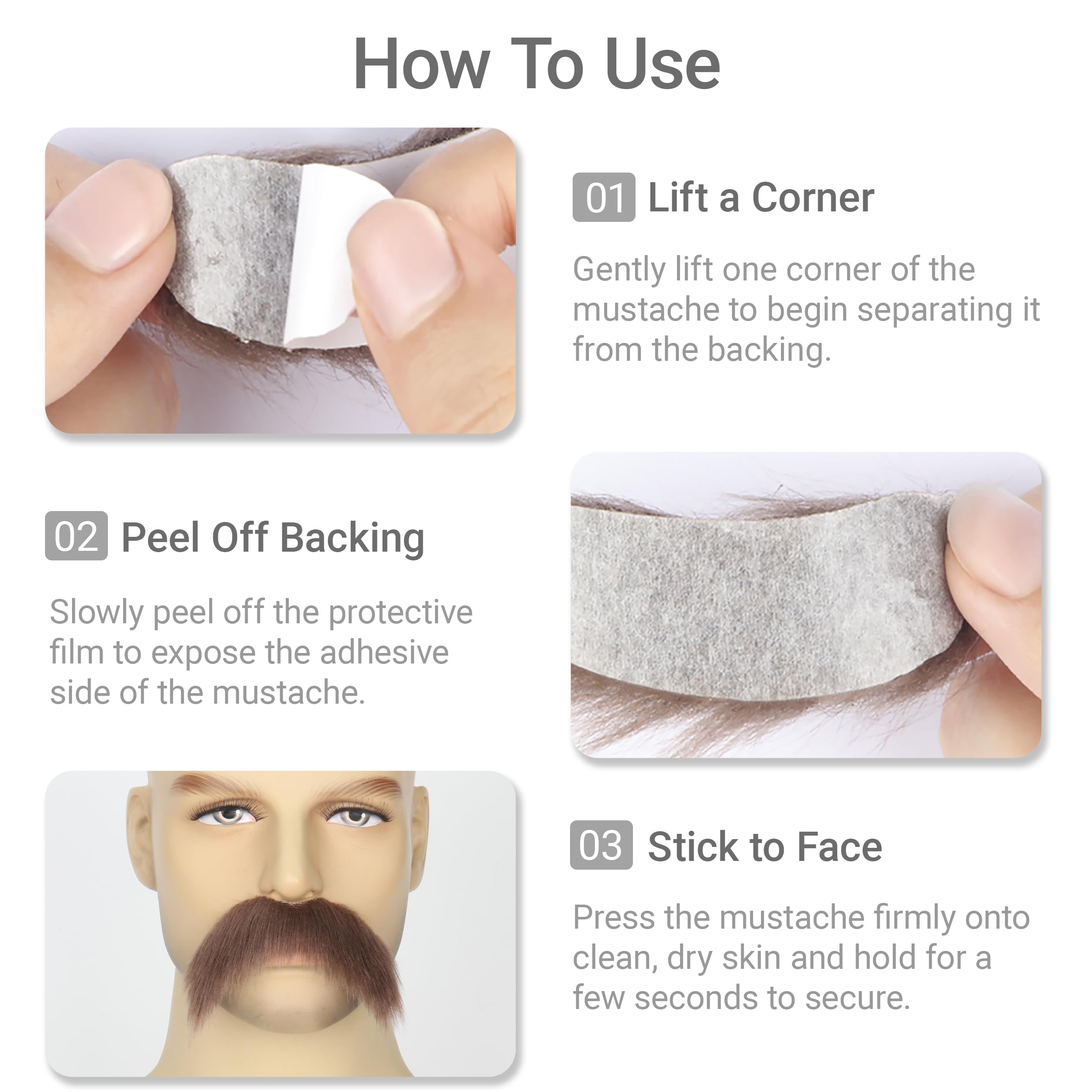 Description 2Pcs Men Fake Mustache Realistic Mustaches Fake Facial Hair Beard for Cosplay Costume Halloween Parties