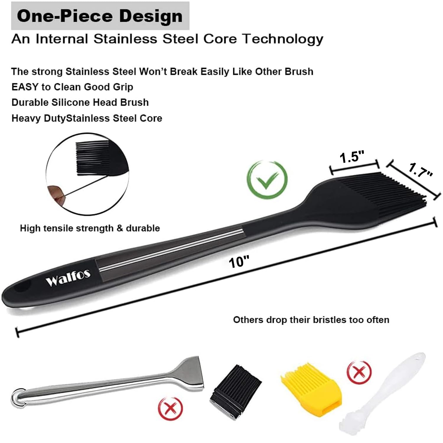 β PREMIUM SILICONE, HEAT RESISTANT UP TO 450Β°F - WALFOS pastry brush made of high-quality food grade silicone which is BPA free. Will never melt,discolor or shrink when grilling, basting or cooking (unlike some plastic, nylon or wooden brushes).