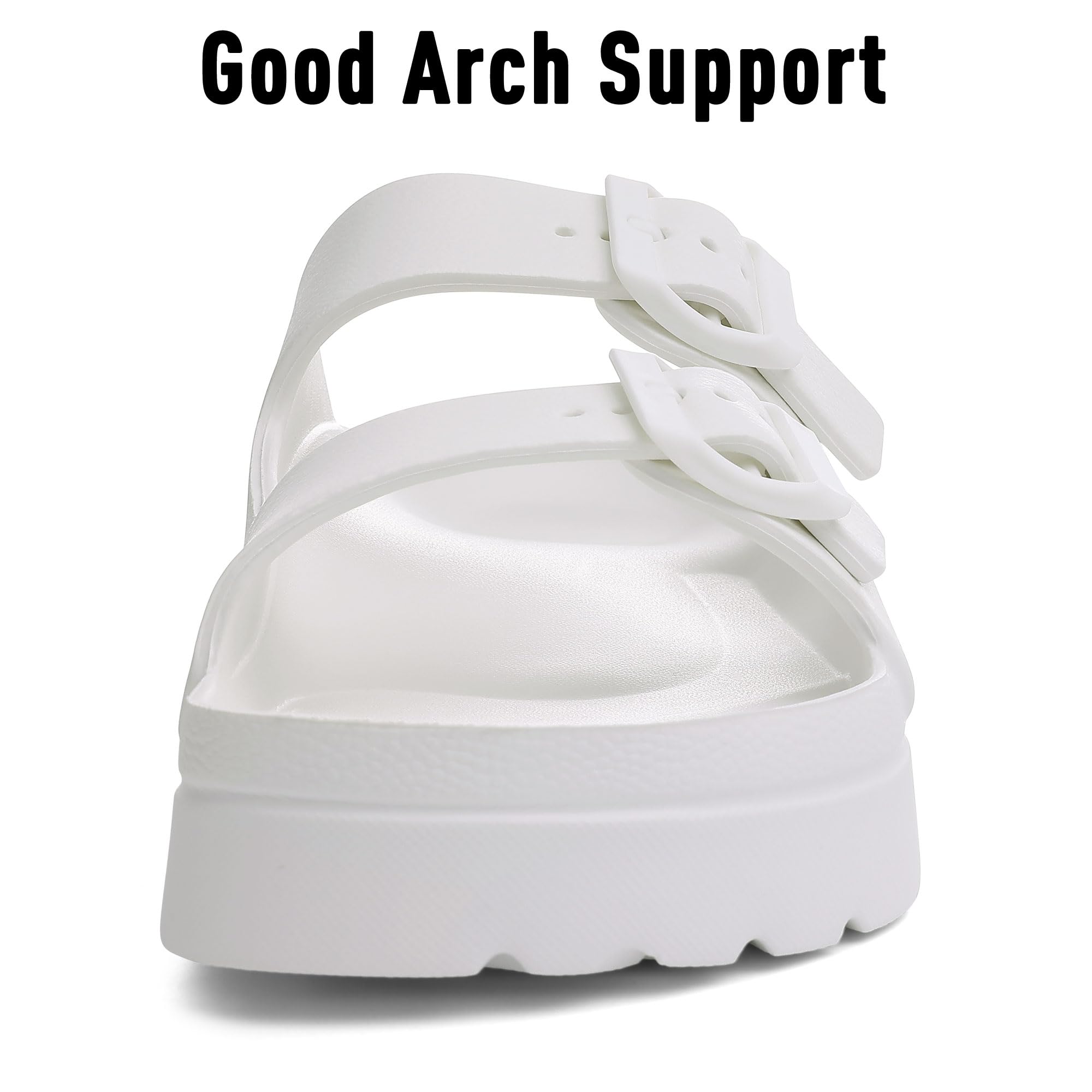 【Arch Support Slides】Featuring pronounced arch support and deep heel cup, footbed molds, and shapes to your foot, you can expect quick and snug fitting that ensures max comfort even after long time use.
