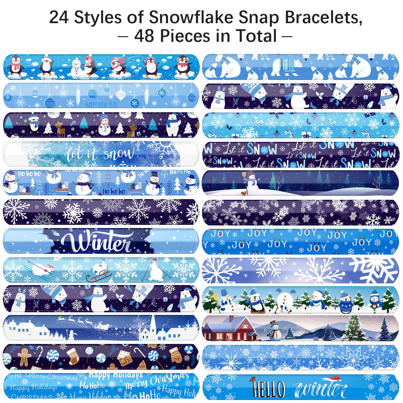 What you will receive: you will receive 24 styles of winter snap bracelets, 2 pieces for each style, in a total of 48 pieces, fun and attractive; each party slap bracelet measures 8.7 inches / 22 cm x 1.2 inches / 3 cm