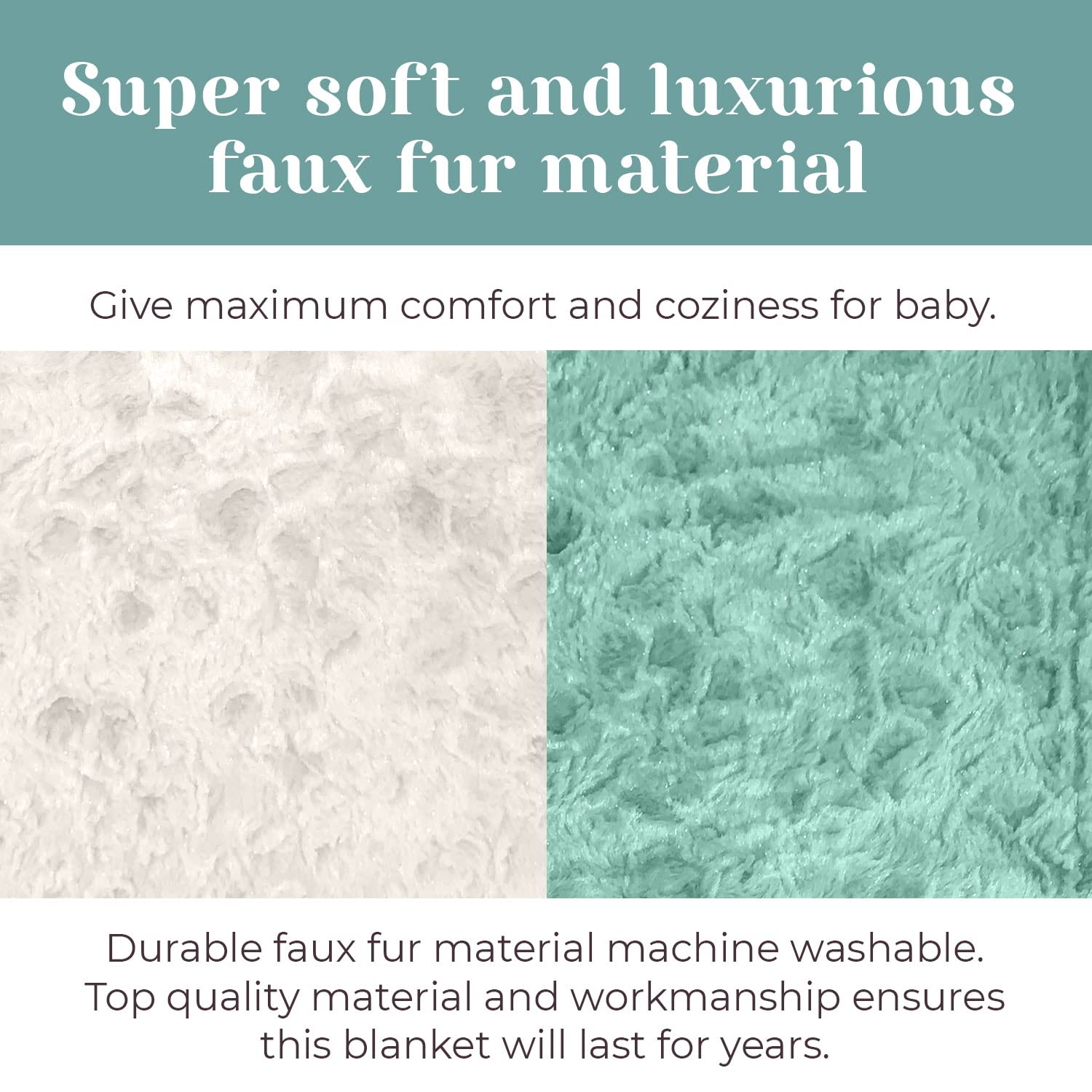 Super soft and luxurious faux fur material to ensure maximum comfort and coziness for baby.