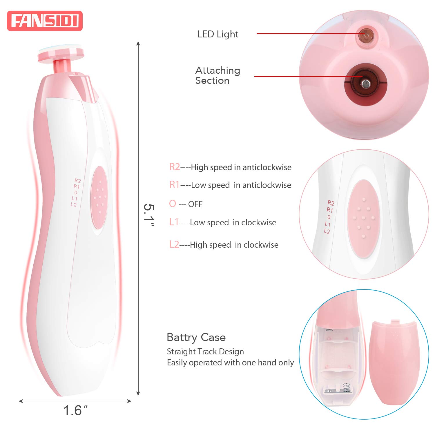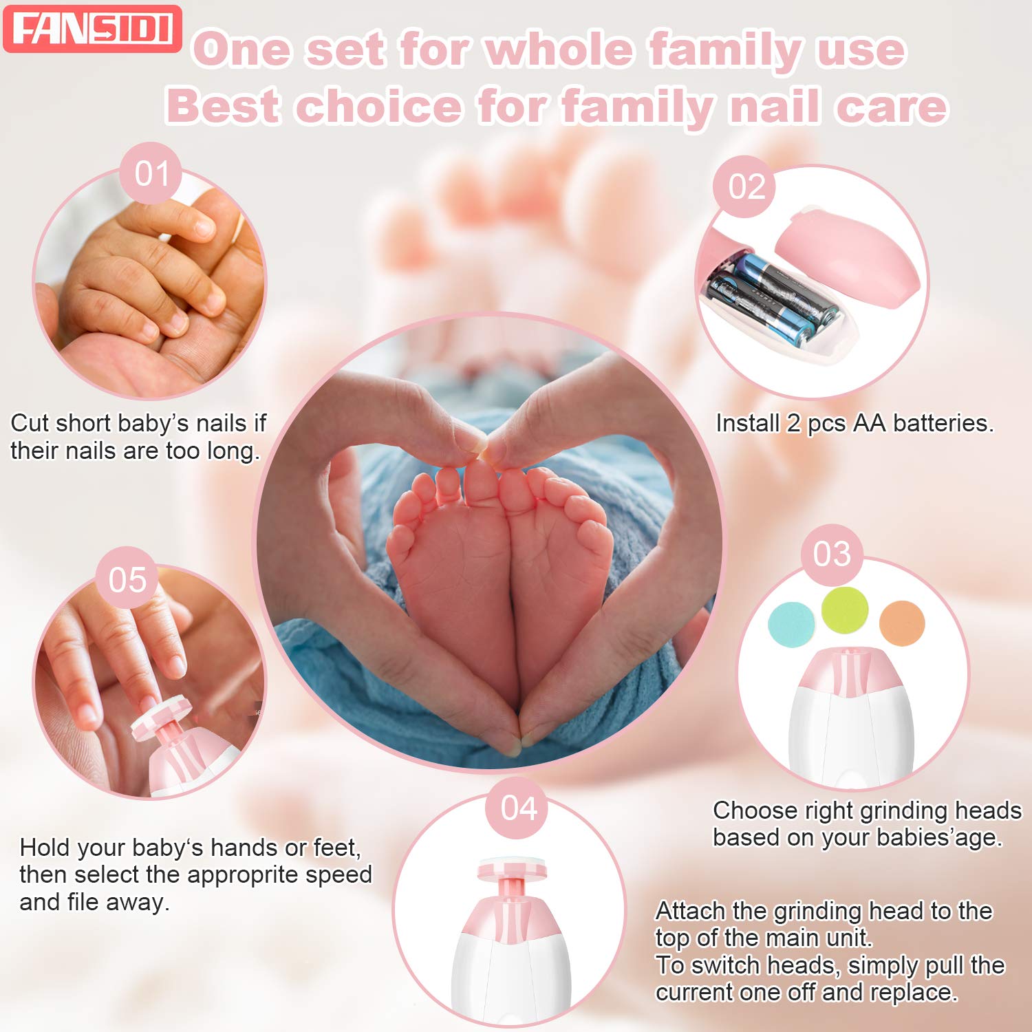 β₯SAFE BABY NAIL CARE TOOL - Fansidi baby electric nail file is safely and quickly trim and polish little toenails and fingernails when it works in a electric grinding way instead of traditional cutting way, won't damage cuticles or soft nail beds.